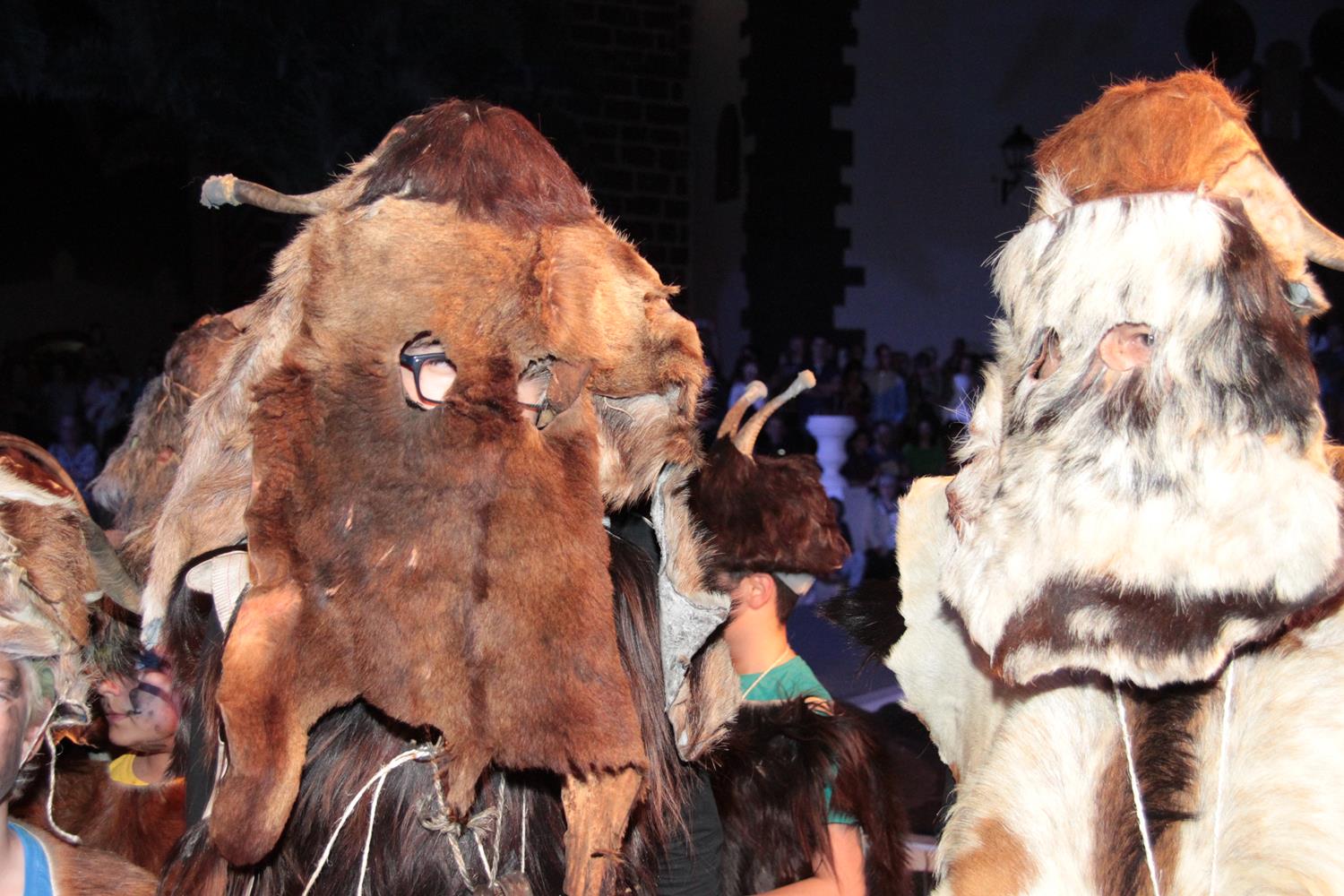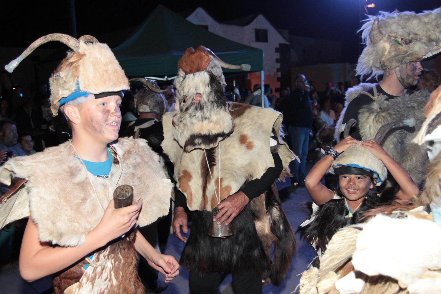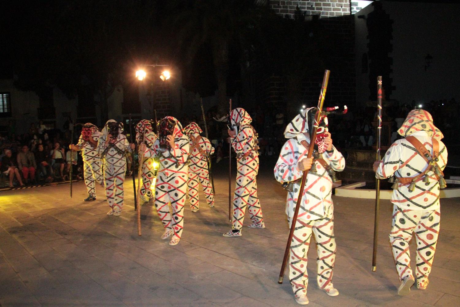 La agrupación Los Diabletes de Teguise, anfitrión de la fiesta, puso en escena su baile tradicional para cerrar el acto del Carnaval tradicional. Su atávico disfraz, sus esquilas y sobre todo los zurrones que emplean para pegar a la gente impactaron al público y a los más pequeños.