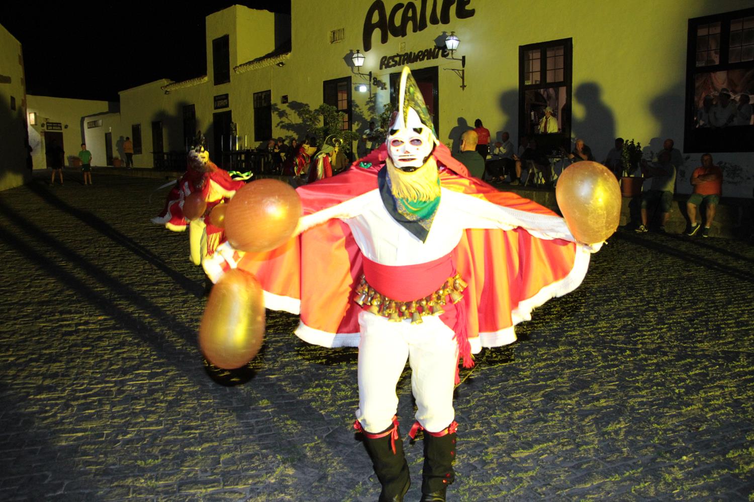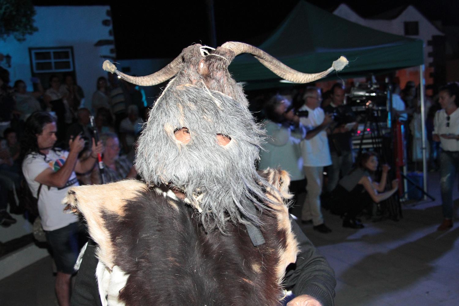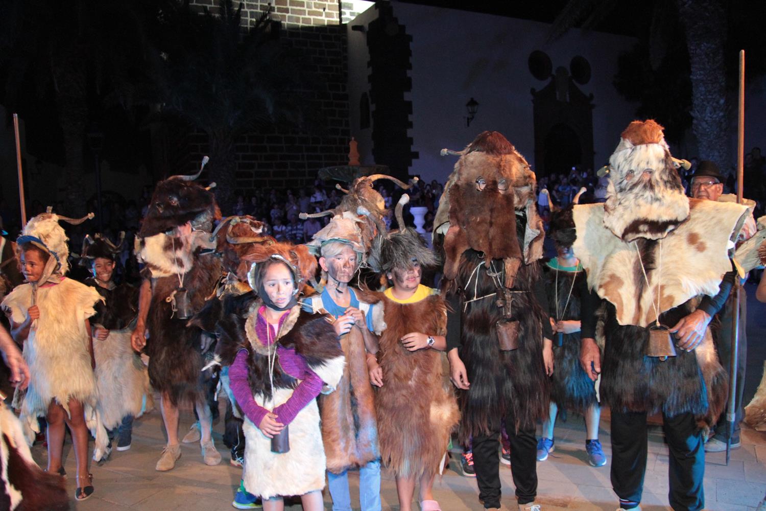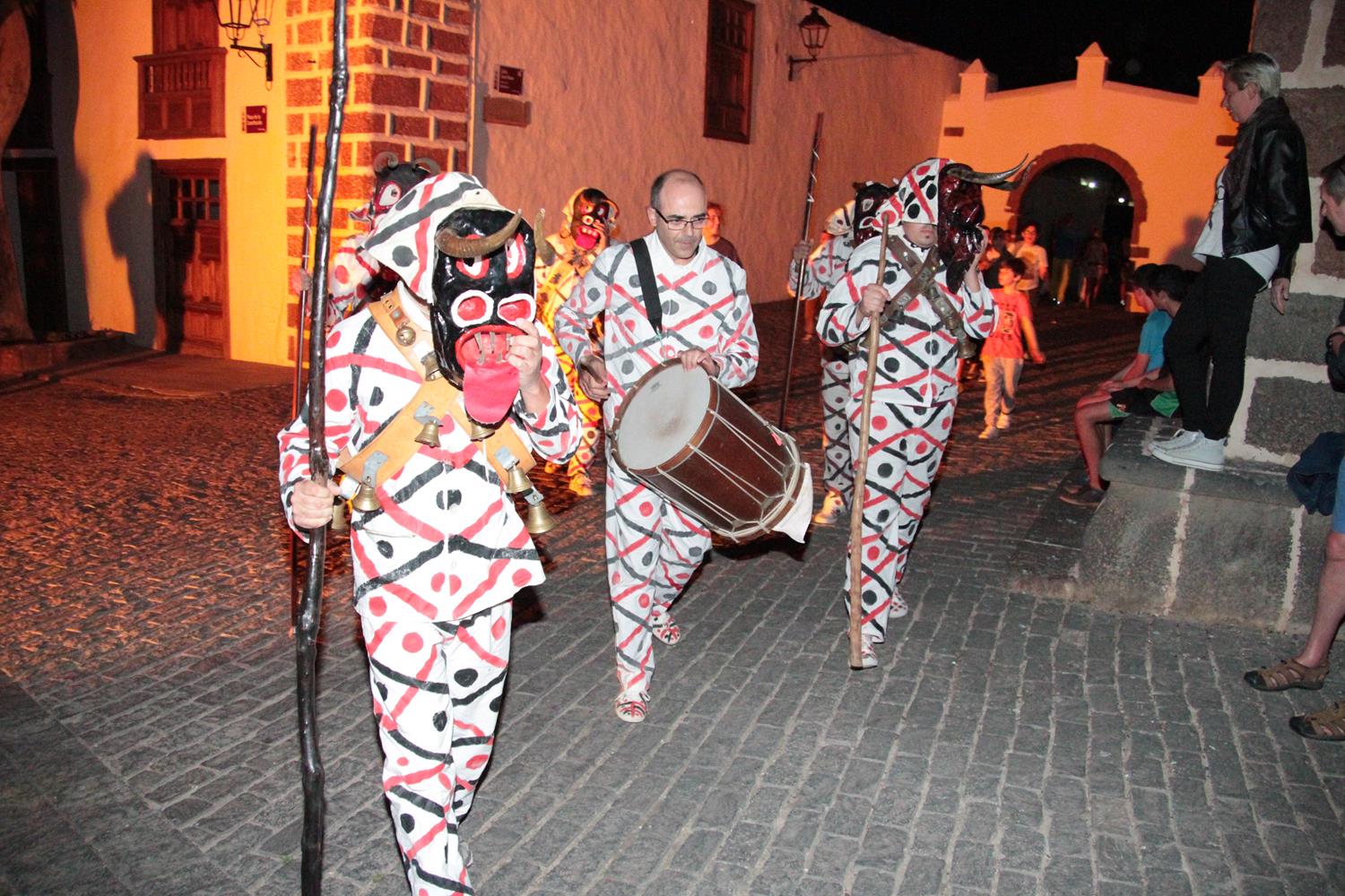 La agrupación Los Diabletes de Teguise, anfitrión de la fiesta, puso en escena su baile tradicional para cerrar el acto del Carnaval tradicional. Su atávico disfraz, sus esquilas y sobre todo los zurrones que emplean para pegar a la gente impactaron al público y a los más pequeños.