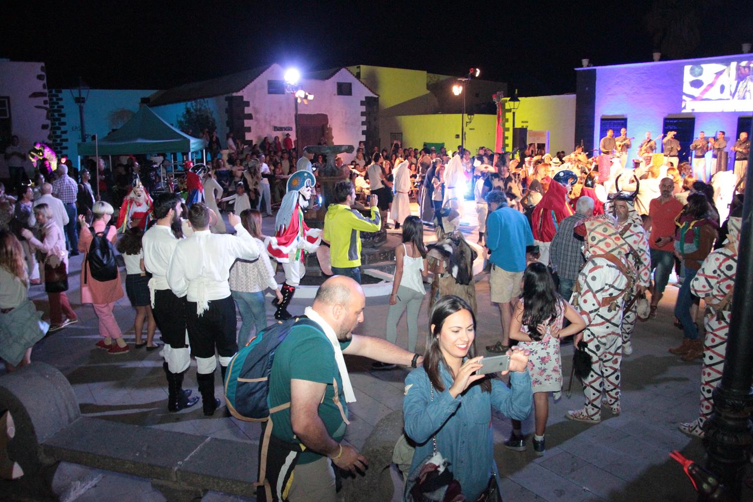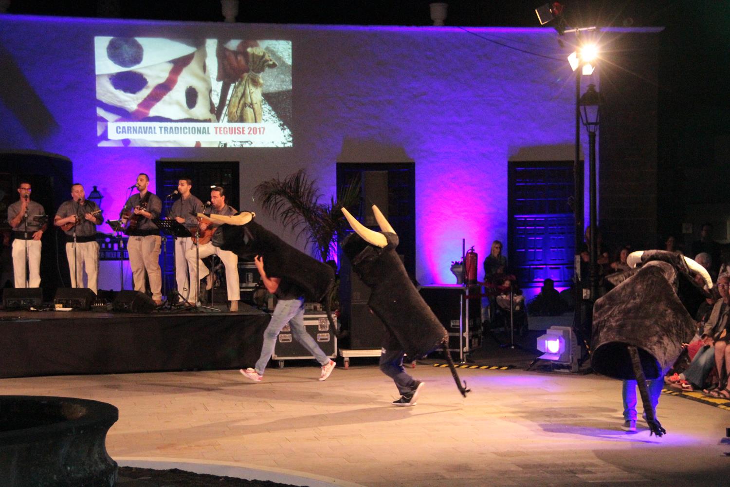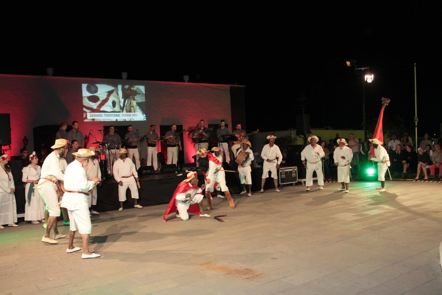 La Plaza de Teguise vivió en la noche del viernes uno de los actos más originales de su Carnaval. Grupos del Carnaval tradicional de Canarias y la agrupación Las Pantallas de Xinxo de Limia de Ourense se dieron cita en el centro del pueblo para rememorar la celebración de estas fiestas tal y como se concebían hace siglos. Cientos de personas se congregaron en la Plaza de La Villa y disfrutaron del espectáculo que organizó el Departamento de Cultura y Festejos del Ayuntamiento de Teguise.