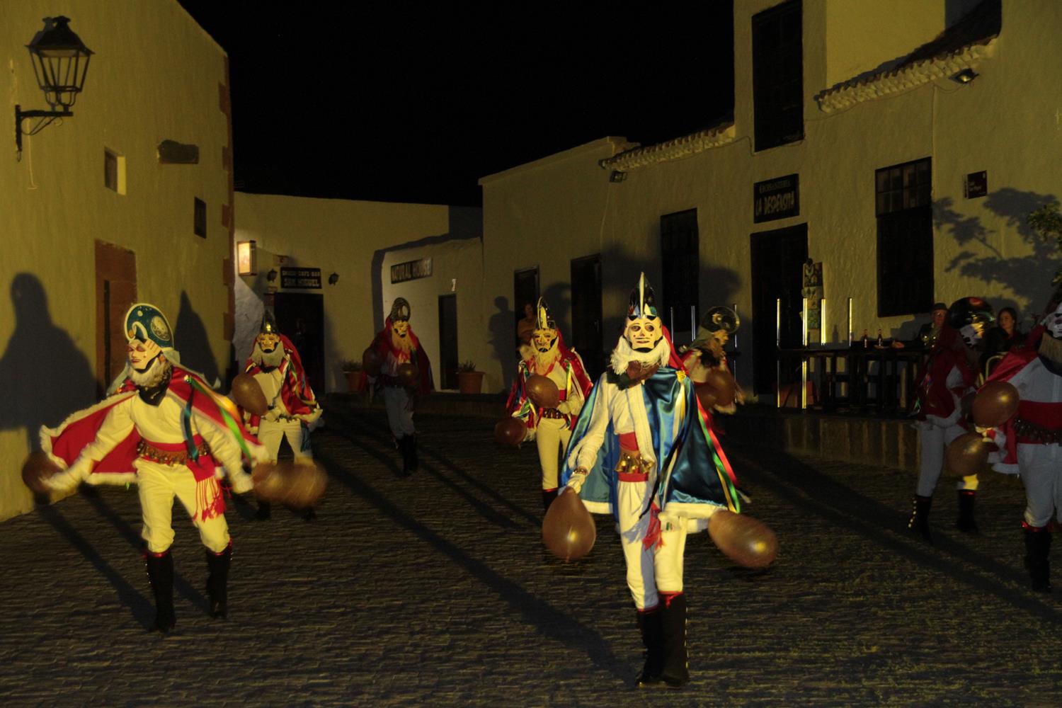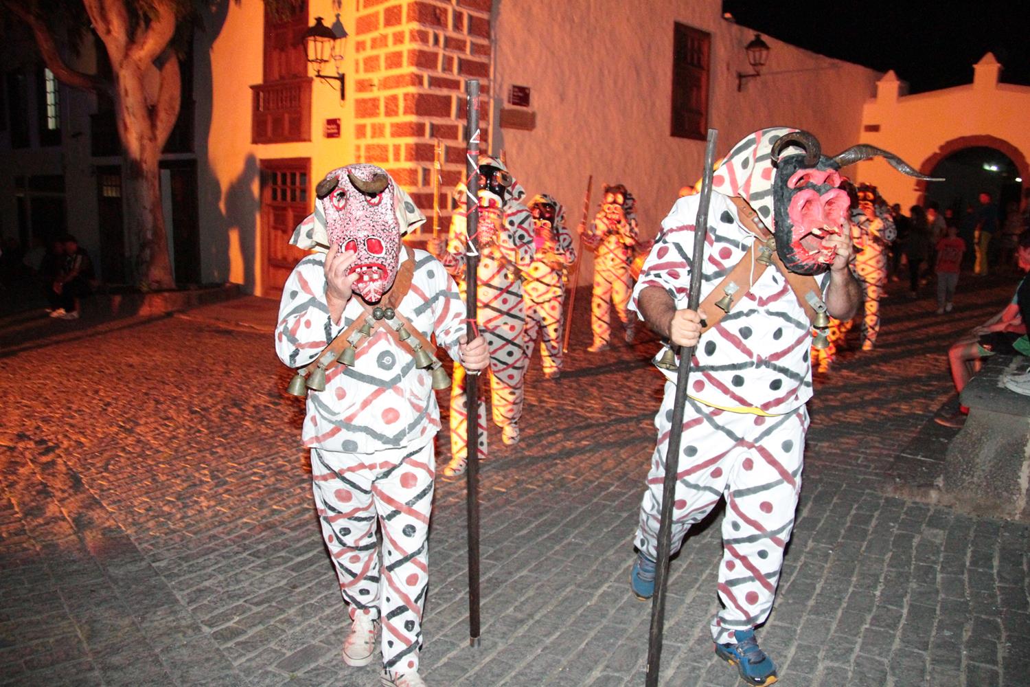 Por las calles de casco histórico fueron apareciendo hasta llegar a la Plaza de La Constitución, la Parranda Los Buches y sus danzarines. Corrieron y embistieron a quienes encontraban delante, los Toros de Tao y Tiagua, y el Carnaval Tradicional de la Aldea exhibió sus zaleas de cabra al tiempo que danzaban y hacían sonar sus cencerros.