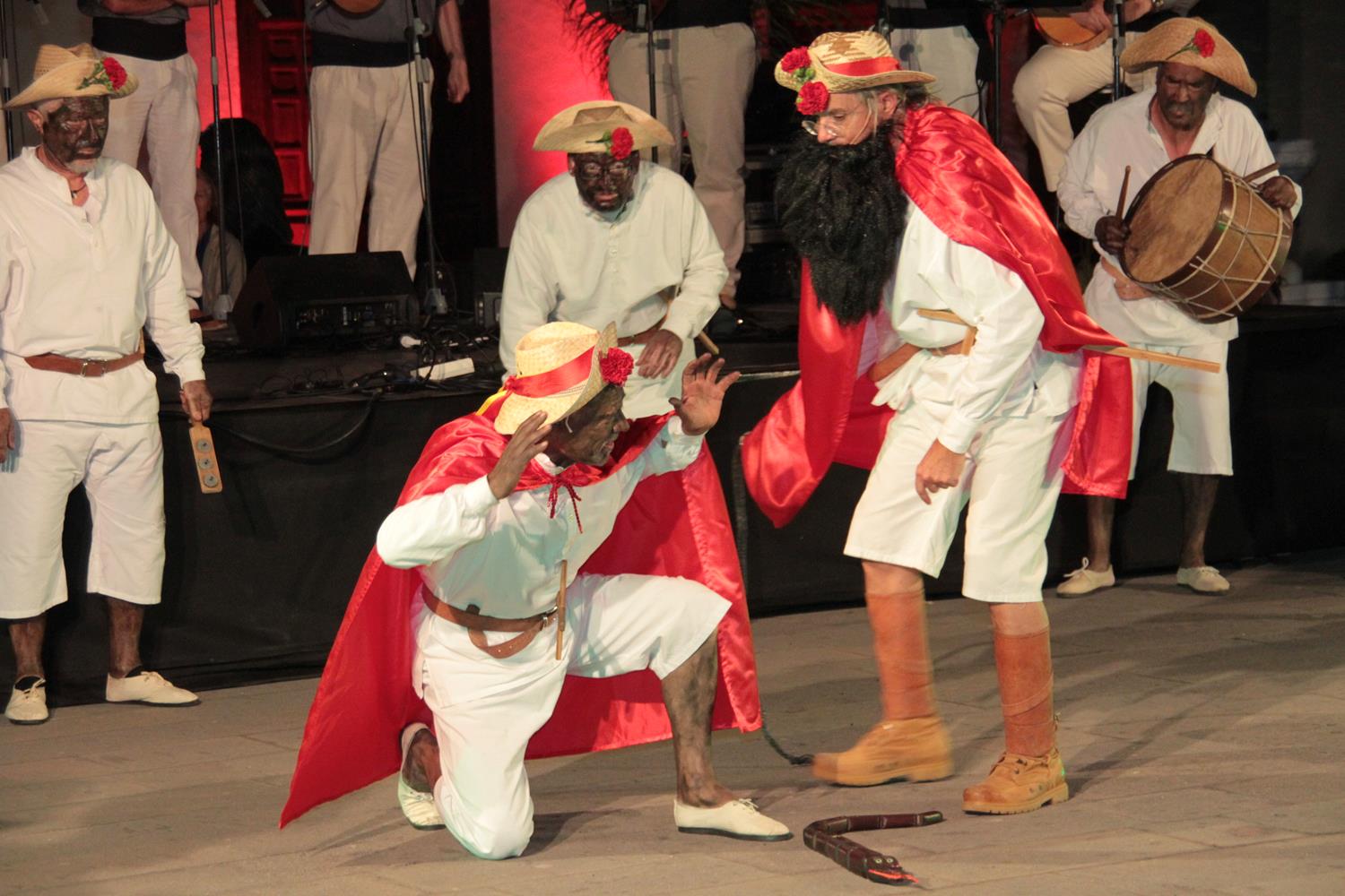 Otra de las agrupaciones del Carnaval tradicional de las islas, Los Empolvados de La Palma, llegaron a Teguise dispuestos a llenar de polvos talco a sus vecinos. Por su parte, el Mataculebra de Tenerife escenificó a ritmo de tambor su particular ritual de matar a la culebra protagonizado por los esclavos.