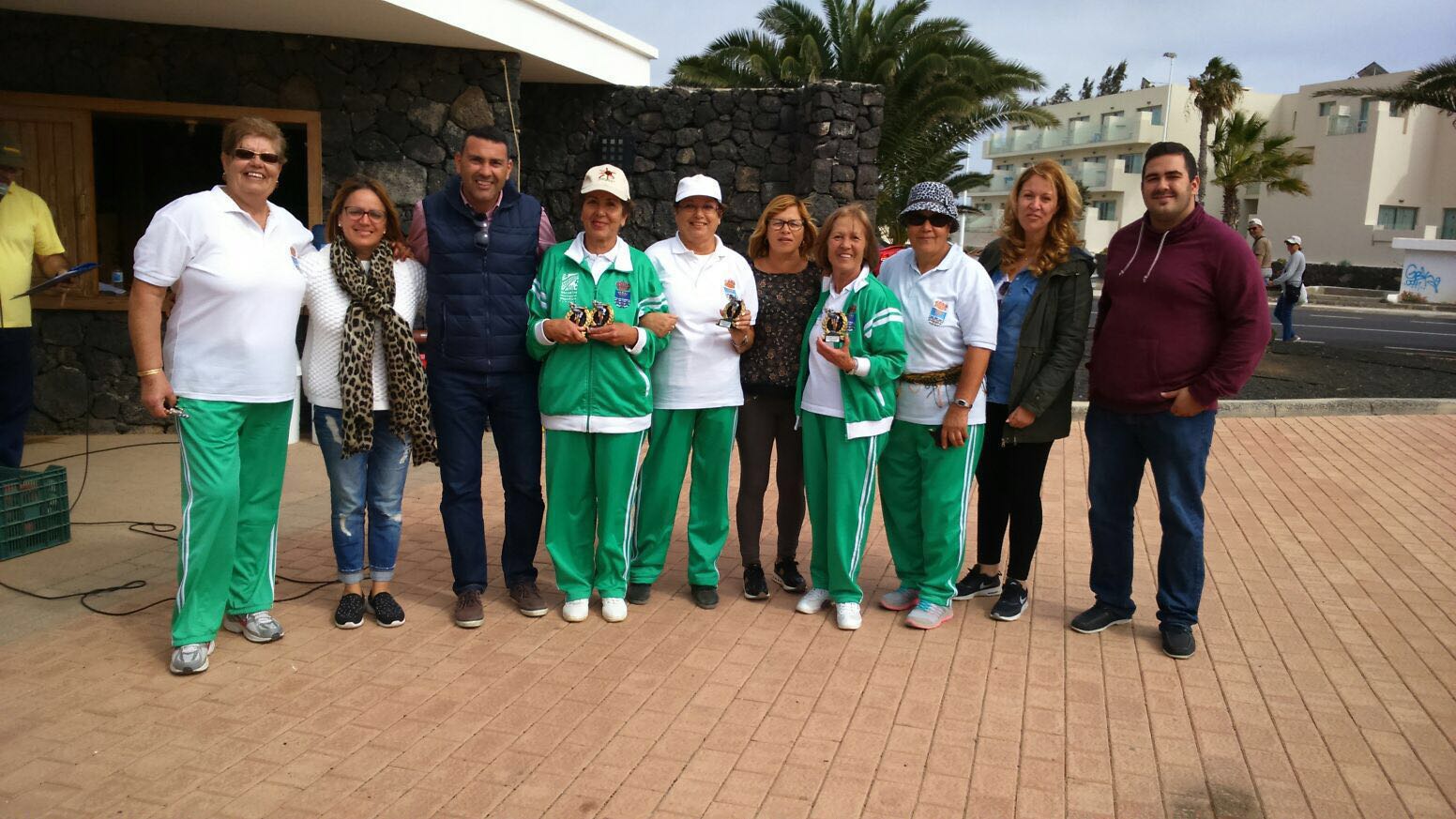 El alcalde de Teguise, Oswaldo Betancort, y la concejal del área, Nori Machín, felicitaron a los ganadores de este pequeño torneo que sirvió como calentamiento para el Torneo Insular de Abuelos Conejeros, que este año acoge Teguise.