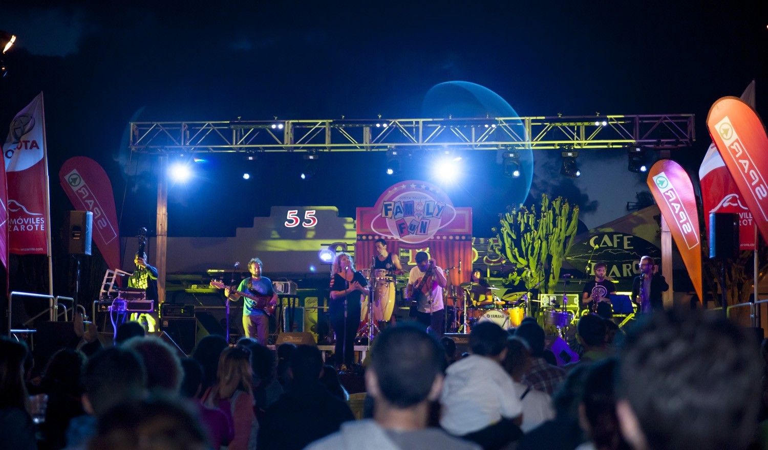 La rumba, el funk, el reggae y el pop del grupo local Ciempiés Ni Cabeza abrió el Family Fun el pasado viernes, ofreciendo una actuación en directo a sus siempre fieles seguidores y a las nuevas generaciones. A continuación, de Alto Cedro, La Sra. Tomasa se fue para Marcané, llegó a Cueto, se marchó para Mayarí, y llegó hasta un momento electro-mestizo con el que se dio por cerrada la primera jornada de #FamilyFun, dedicada a los más grandes de la casa y que lograron un verdadero ambientazo en el Centro Comercial Nautical de Costa Teguise.