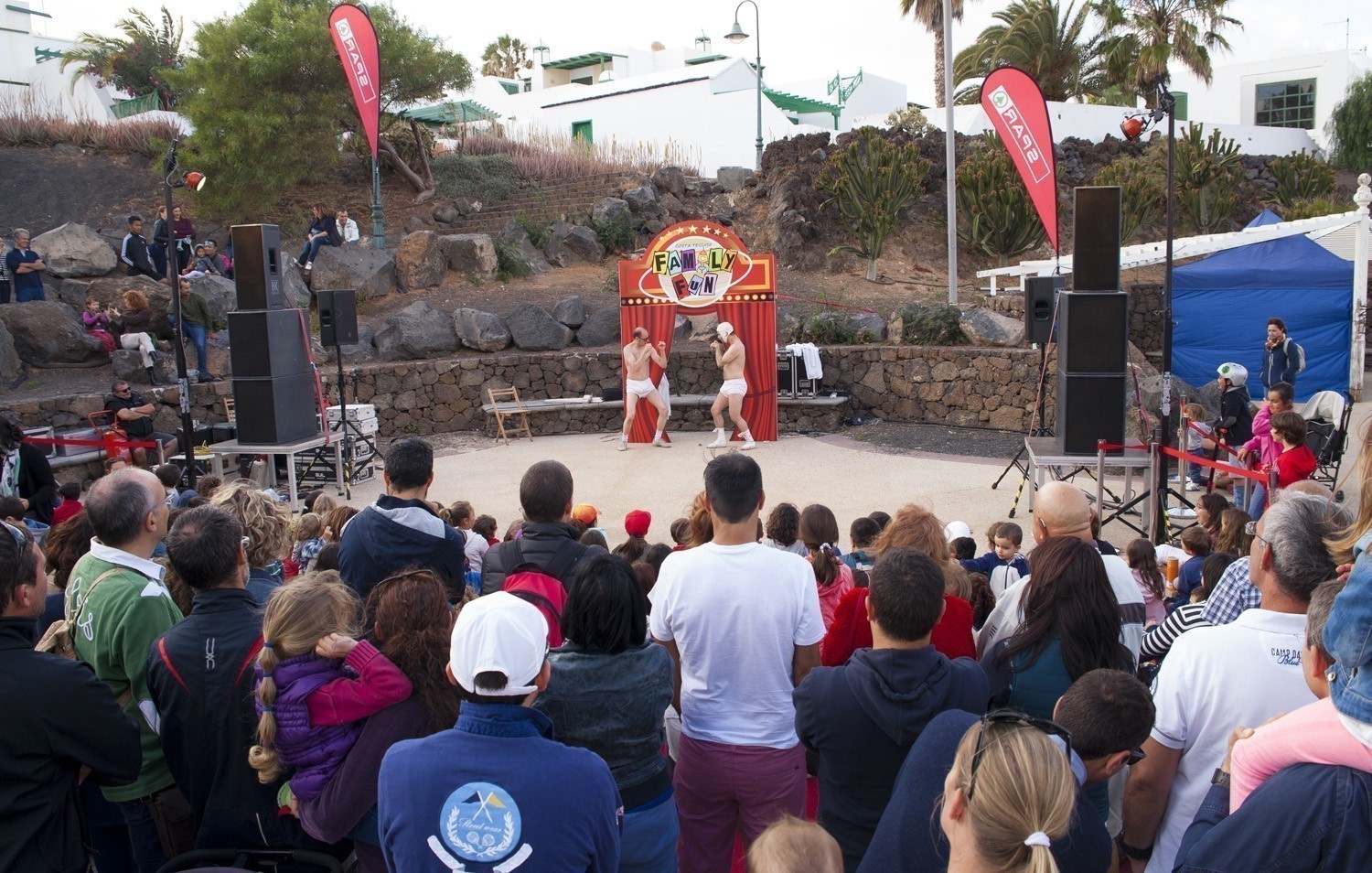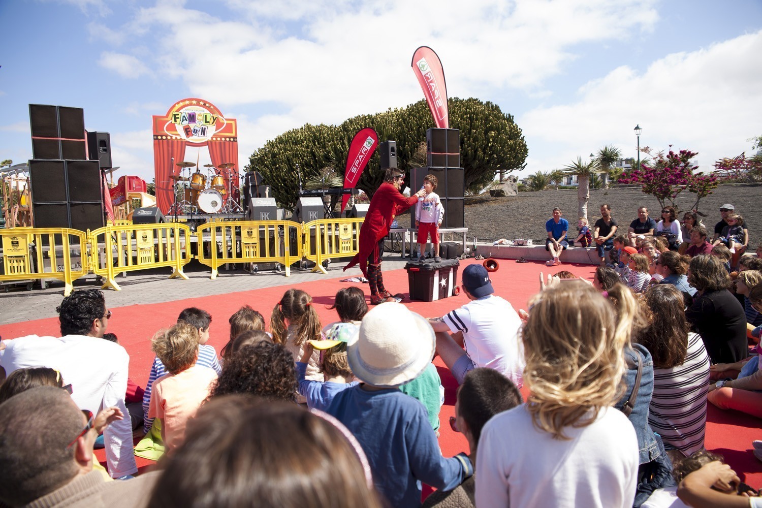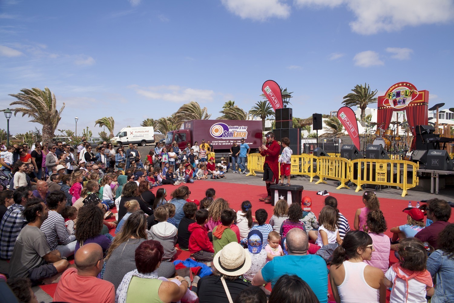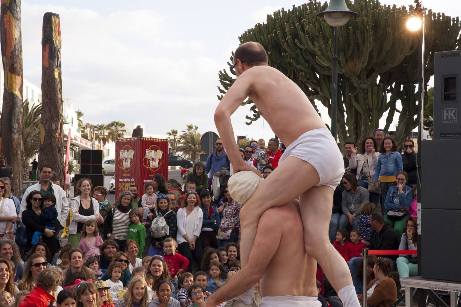 El sábado, Family Fun se mudó a la Plaza Tenerife para ofrecer un programa diurno para peques, medianos y adultos, con los cuentos robados de la Orquesta Clásica de Lanzarote; con la actuación de El Gran Braulio, “el mejor (¡ejem!) mago del mundo” (Adrián Conde); y con temazos de rock clásico con Rock&Fun; así como acróbatas, clowns, y cómicos de la talla de Xavier Bouvier y Benoît Devos (Okidok) y su espectacular performance.