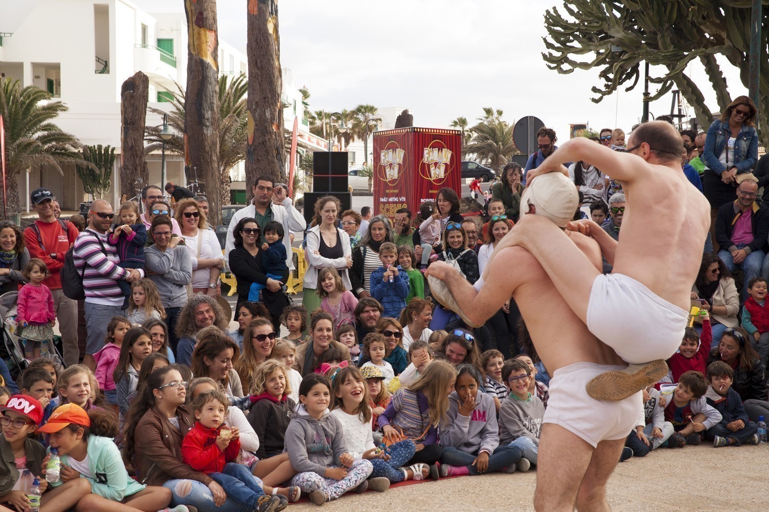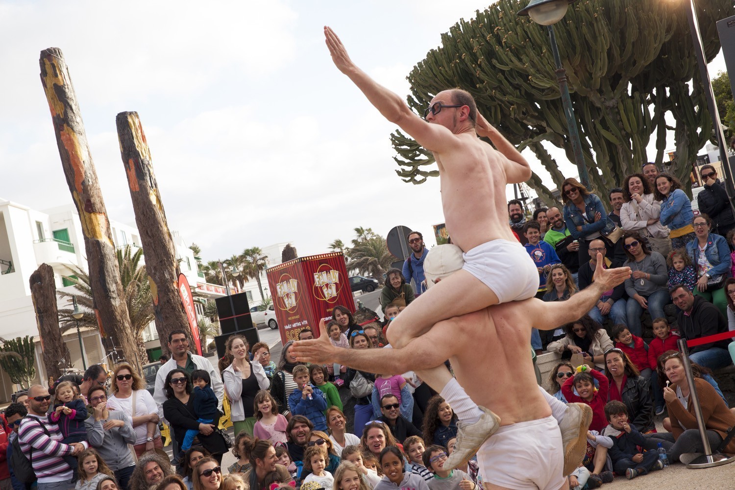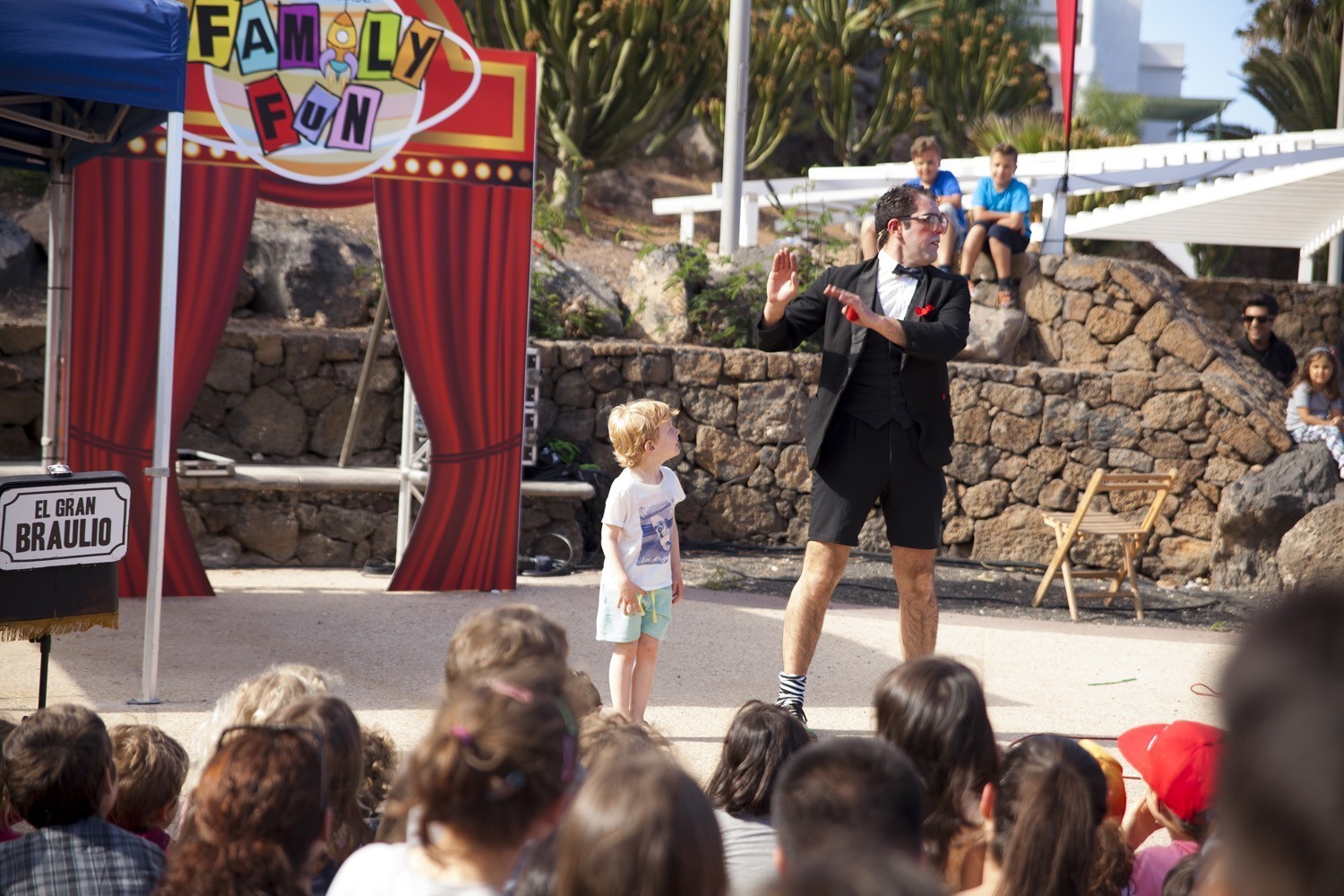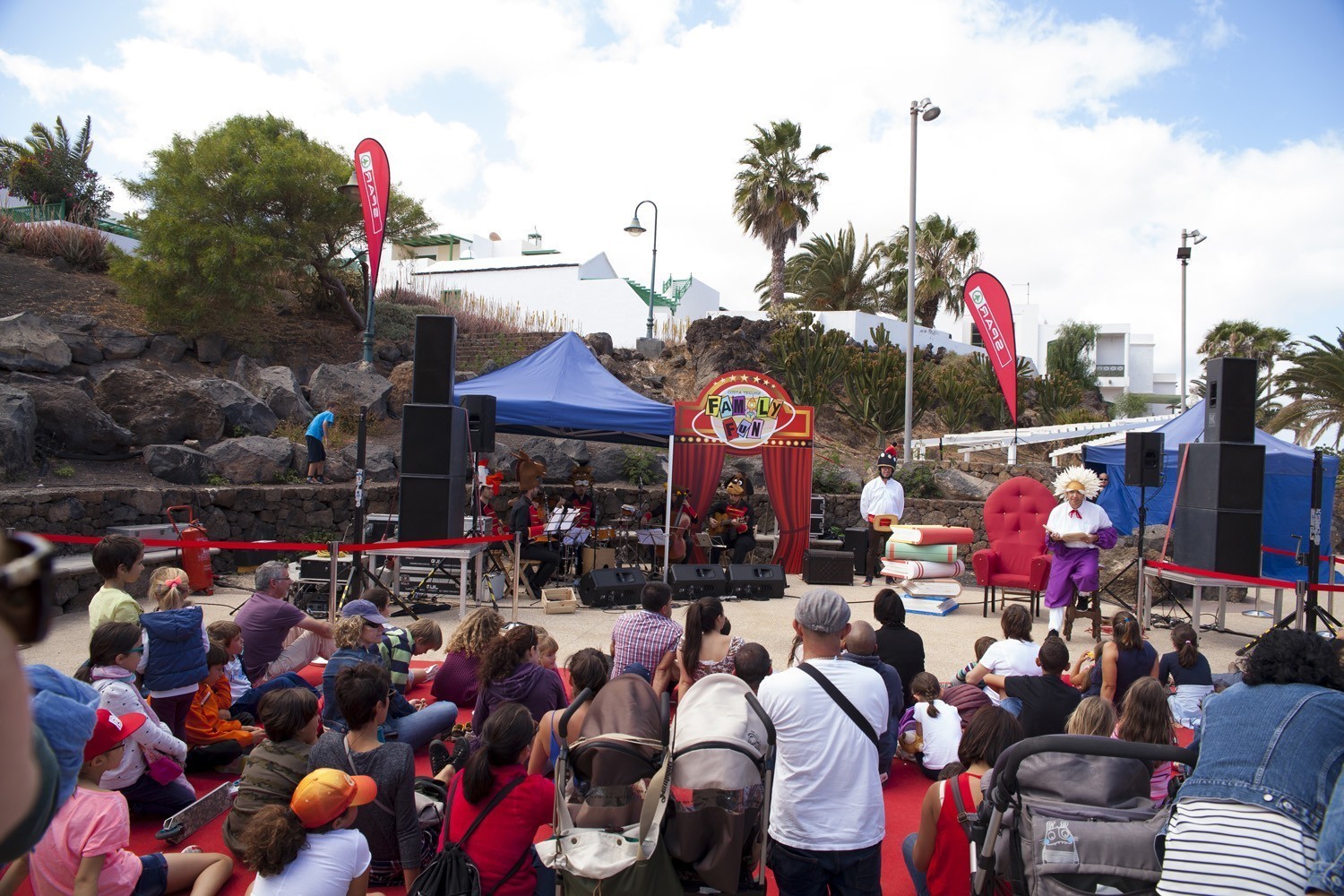 El sábado, Family Fun se mudó a la Plaza Tenerife para ofrecer un programa diurno para peques, medianos y adultos, con los cuentos robados de la Orquesta Clásica de Lanzarote; con la actuación de El Gran Braulio, “el mejor (¡ejem!) mago del mundo” (Adrián Conde); y con temazos de rock clásico con Rock&Fun; así como acróbatas, clowns, y cómicos de la talla de Xavier Bouvier y Benoît Devos (Okidok) y su espectacular performance.