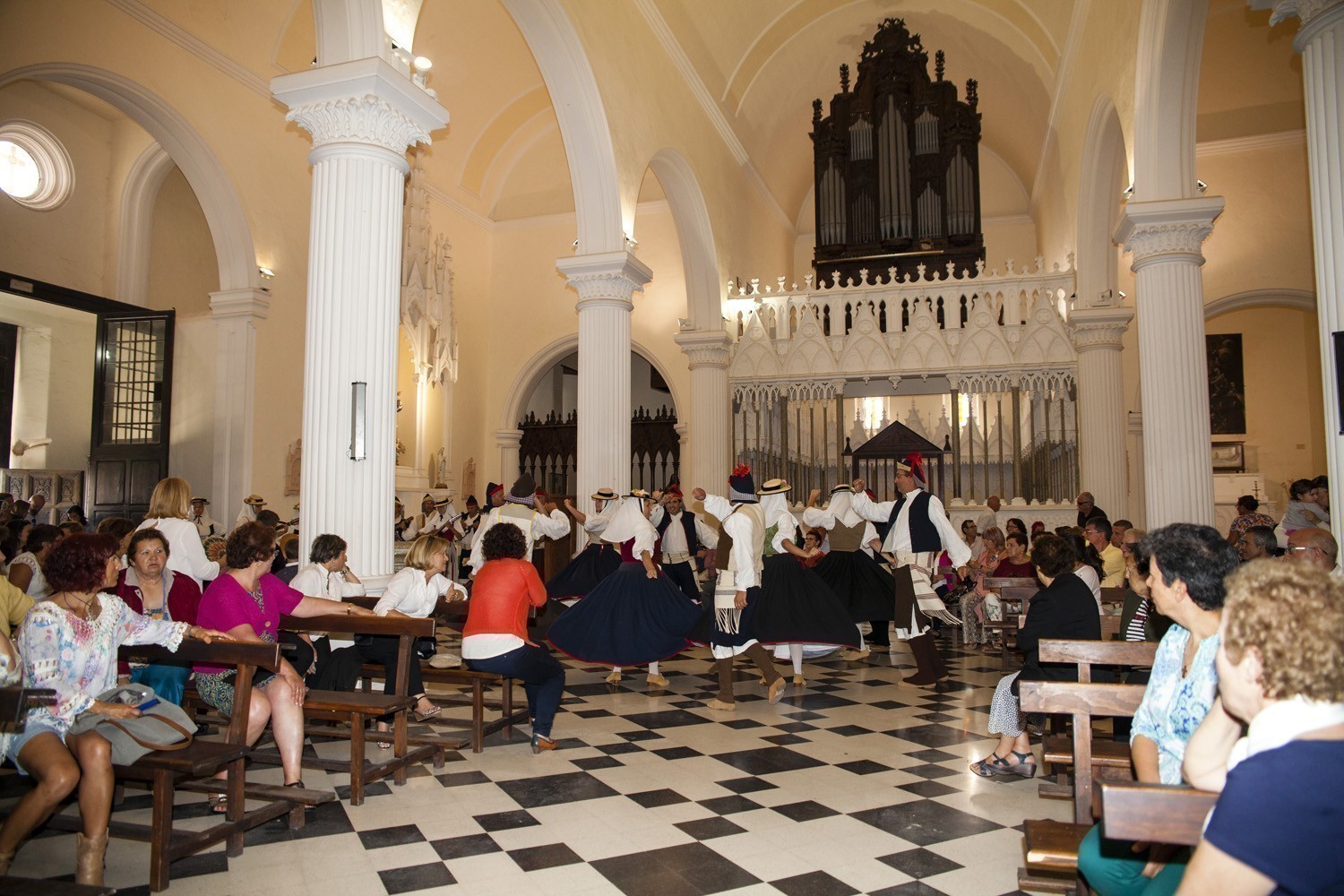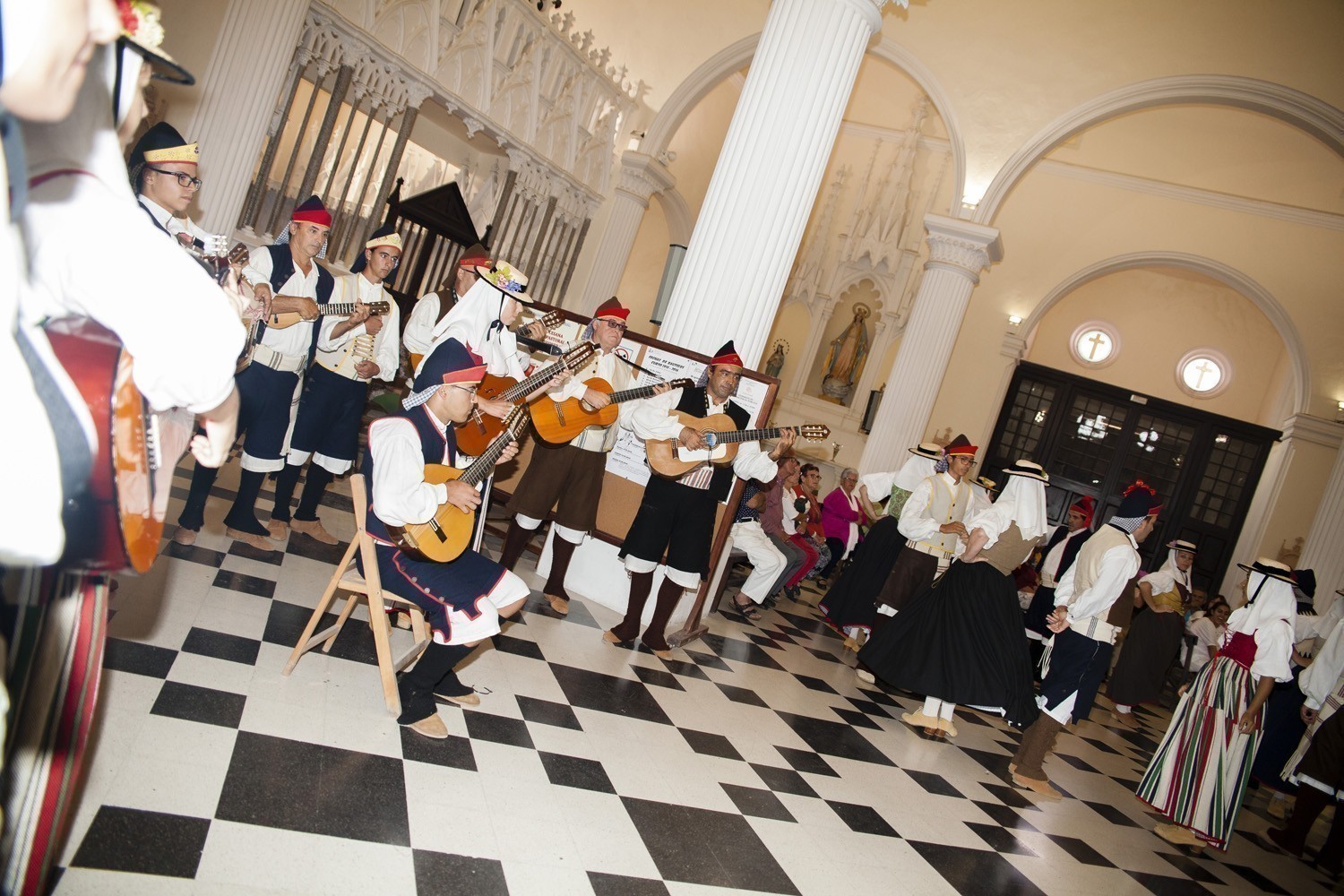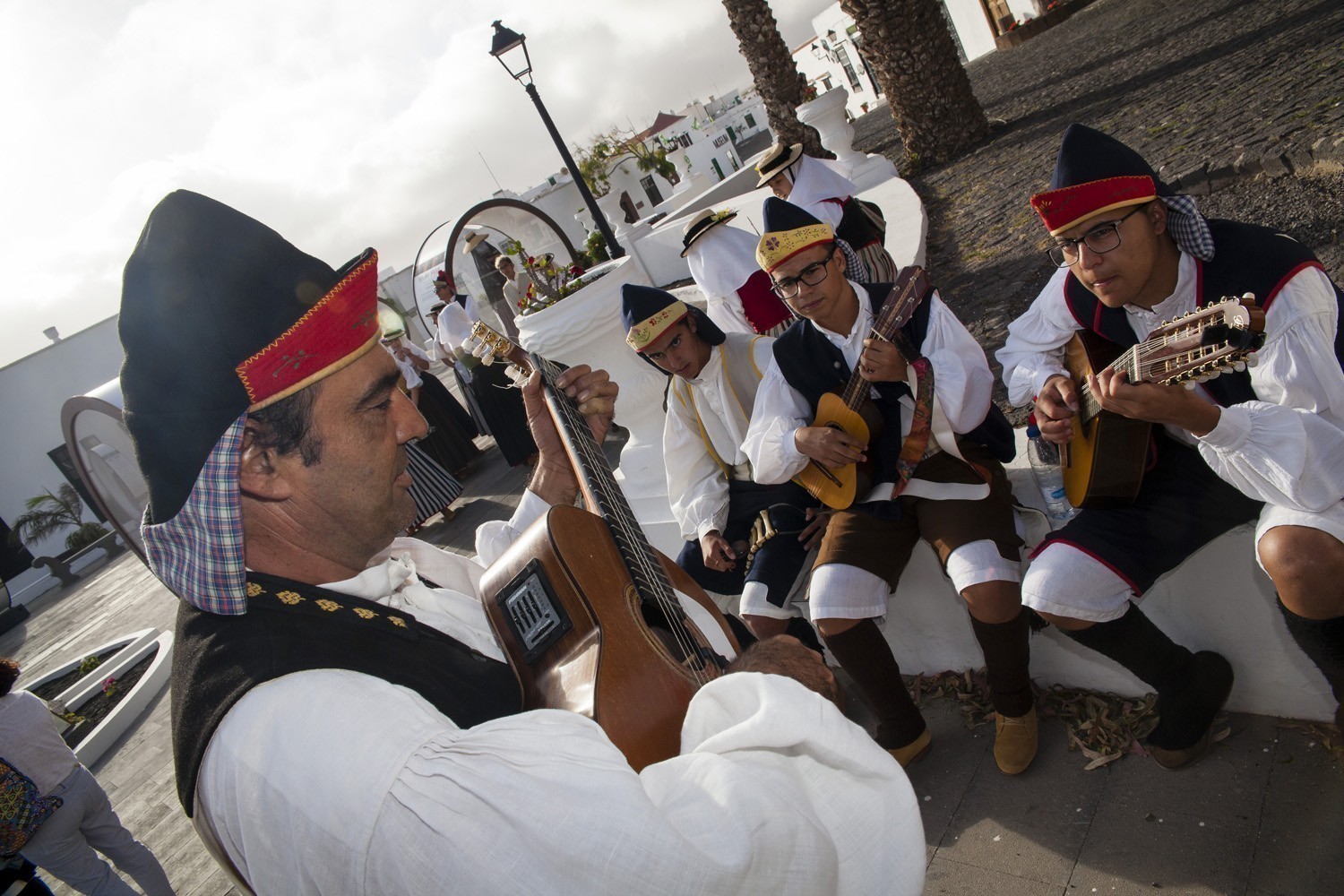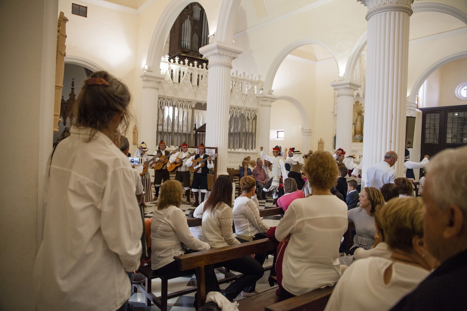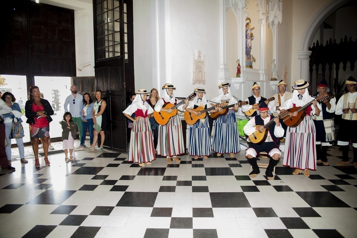 Una vez finalizada la Santa Misa, se puso en marcha el cortejo procesional. Cuando la imagen de Nuestra Señora del Carmen traspasó el pórtico de la iglesia, el público la recibió con un prolongado aplauso. Acto seguido la banda de música de Teguise, que encabezaba la procesión, se encargó de marcar el paso procesional interpretando varias composiciones propias para estos actos.