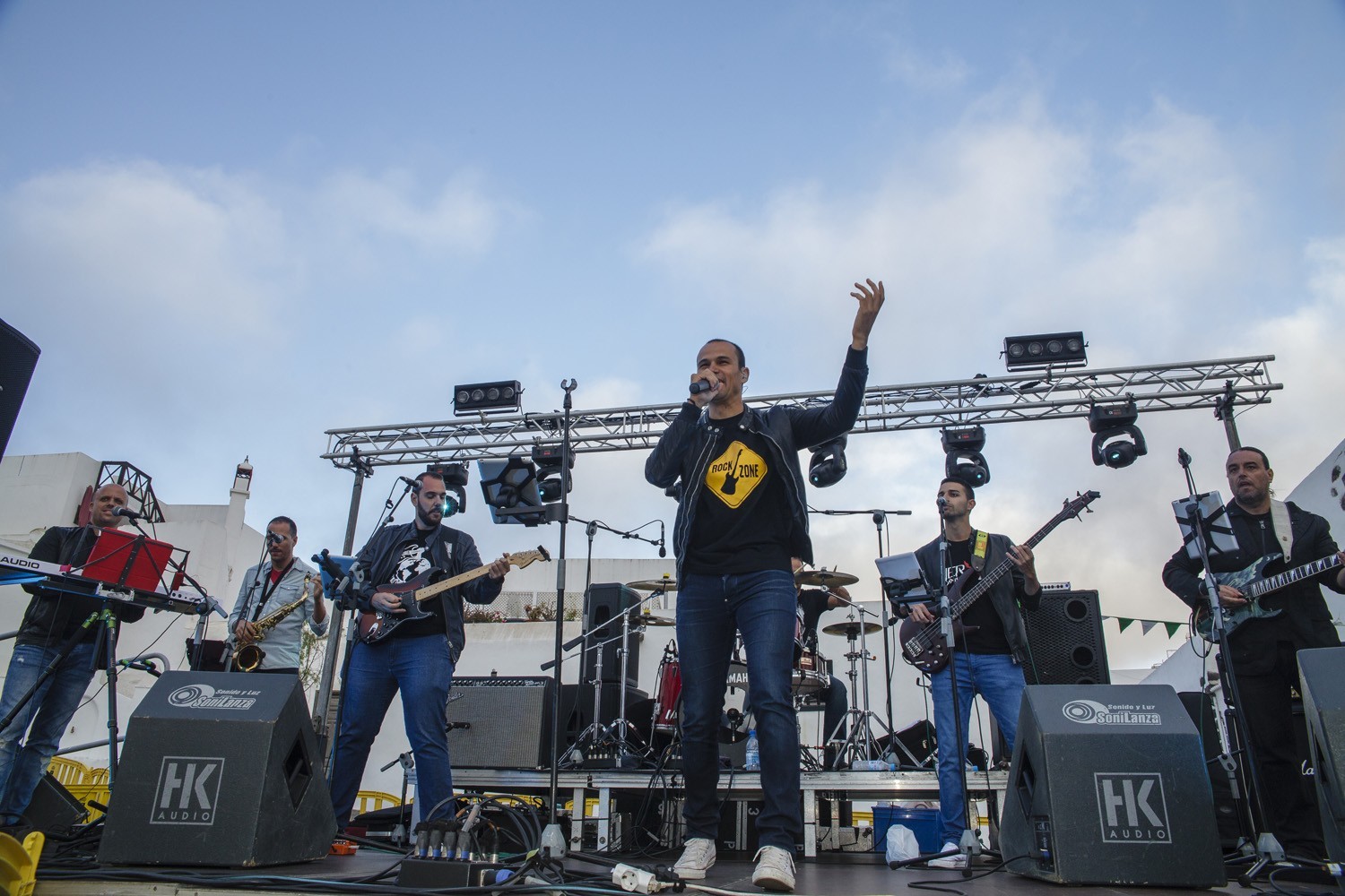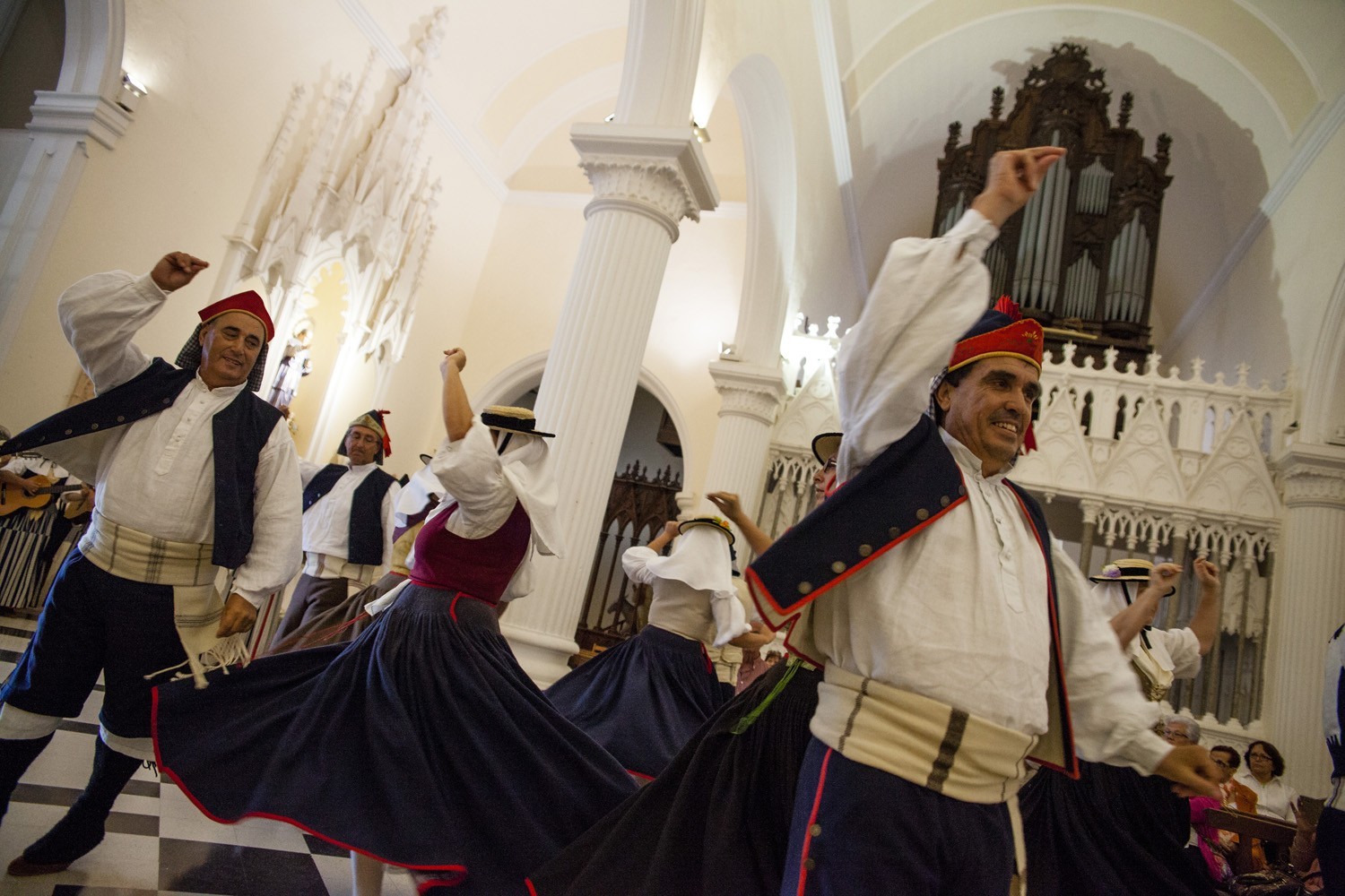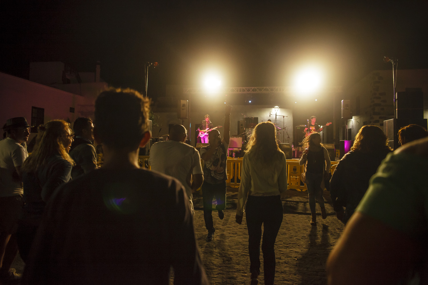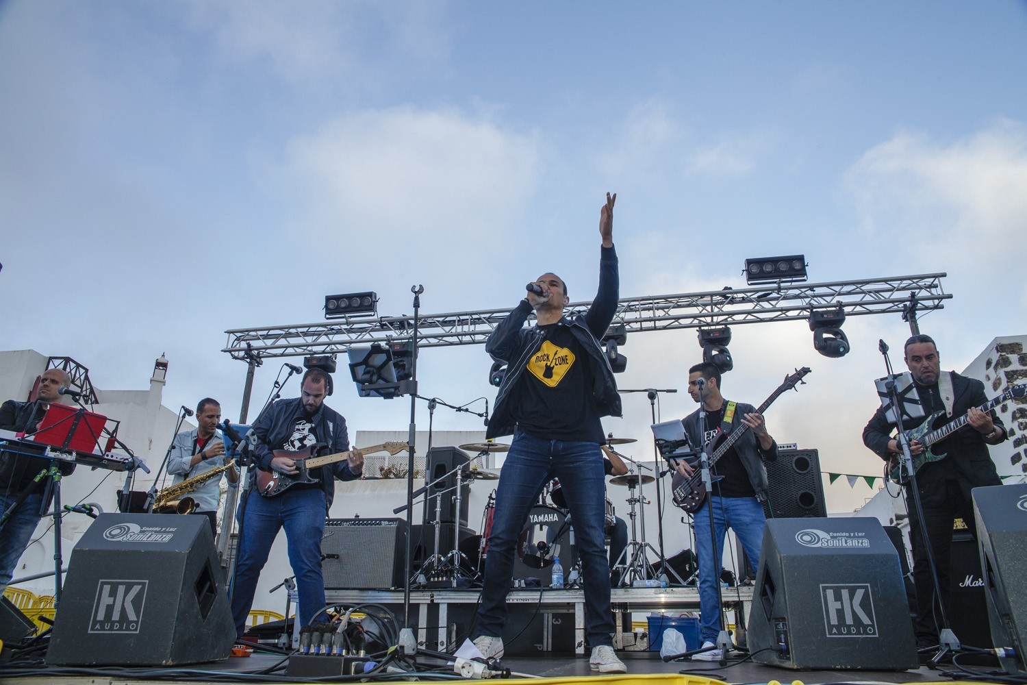 Una vez finalizada la Santa Misa, se puso en marcha el cortejo procesional. Cuando la imagen de Nuestra Señora del Carmen traspasó el pórtico de la iglesia, el público la recibió con un prolongado aplauso. Acto seguido la banda de música de Teguise, que encabezaba la procesión, se encargó de marcar el paso procesional interpretando varias composiciones propias para estos actos.