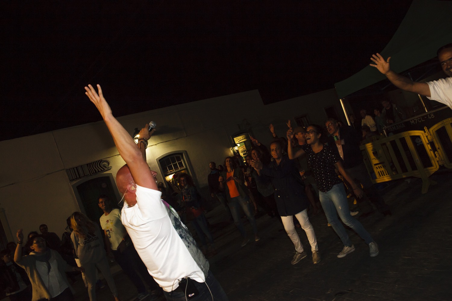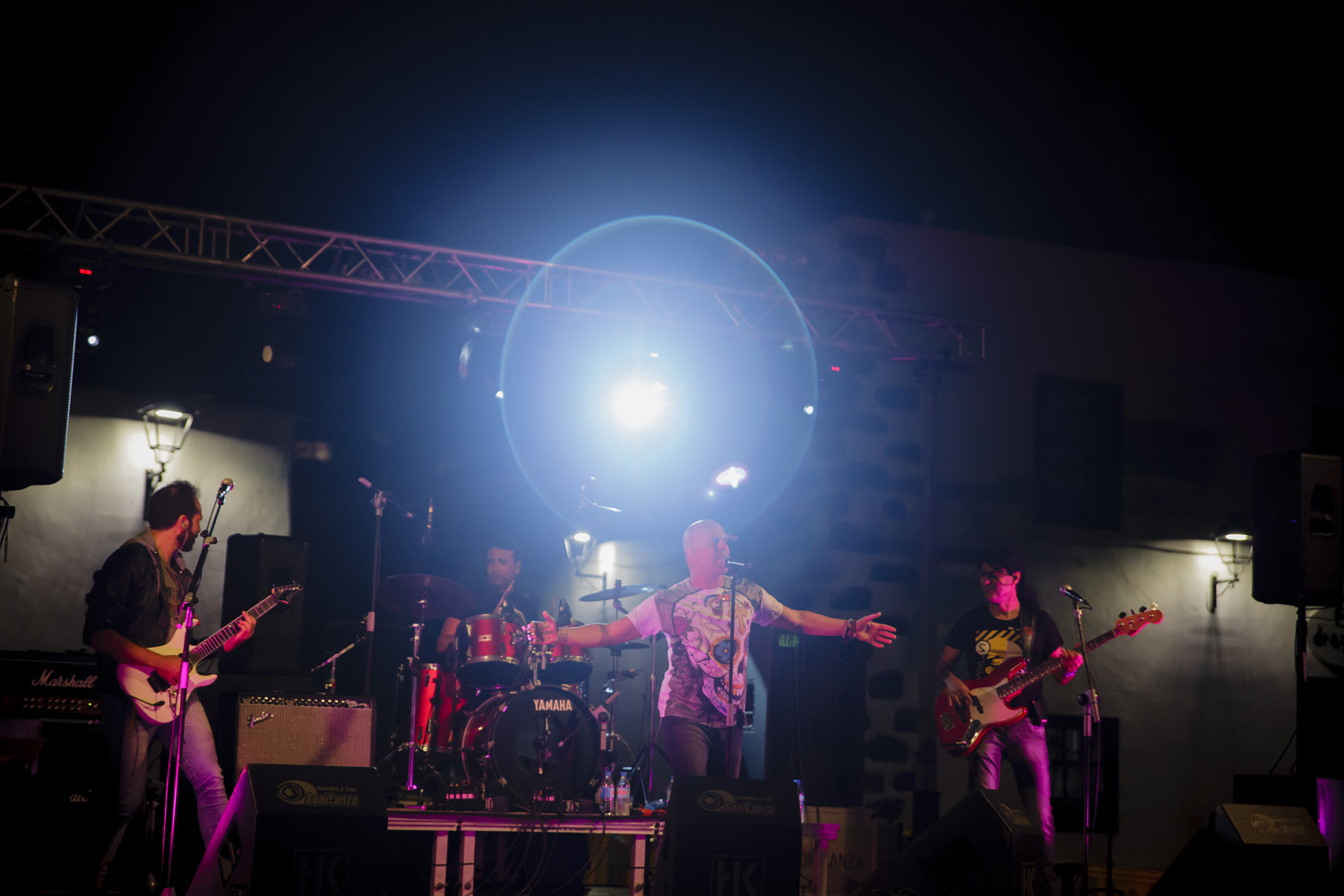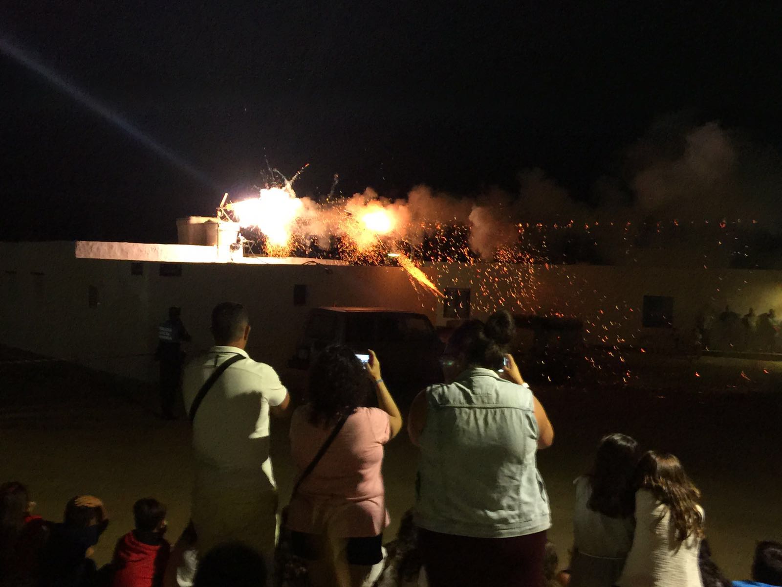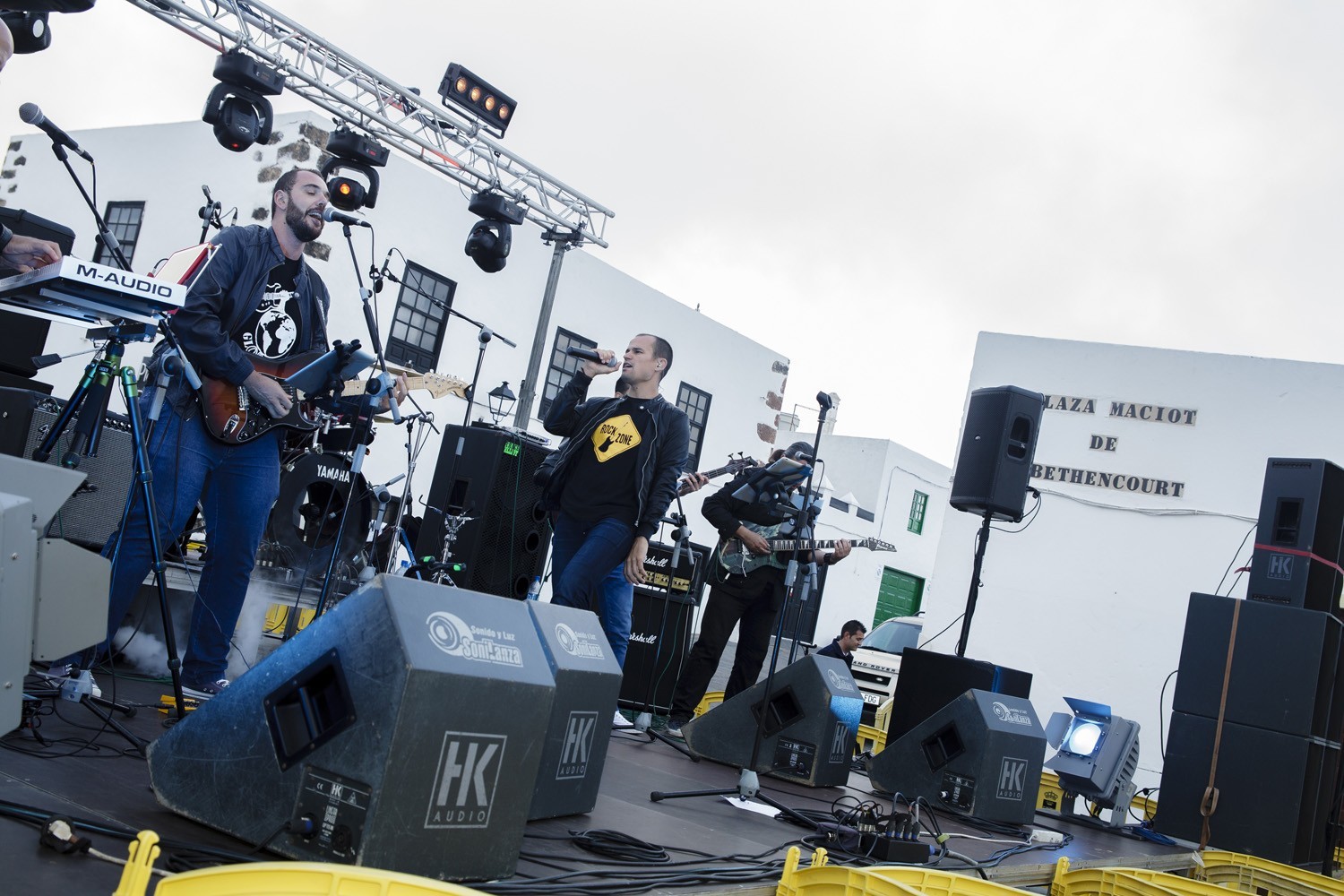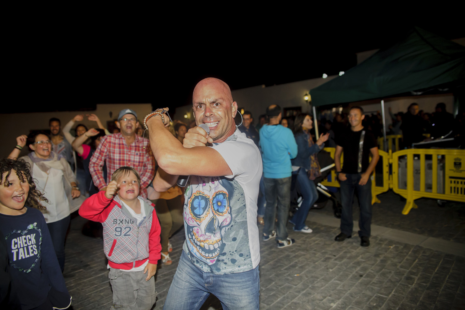 Una vez finalizada la Santa Misa, se puso en marcha el cortejo procesional. Cuando la imagen de Nuestra Señora del Carmen traspasó el pórtico de la iglesia, el público la recibió con un prolongado aplauso. Acto seguido la banda de música de Teguise, que encabezaba la procesión, se encargó de marcar el paso procesional interpretando varias composiciones propias para estos actos.