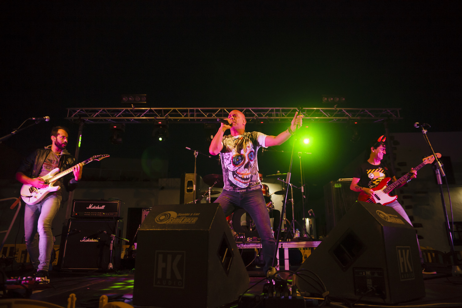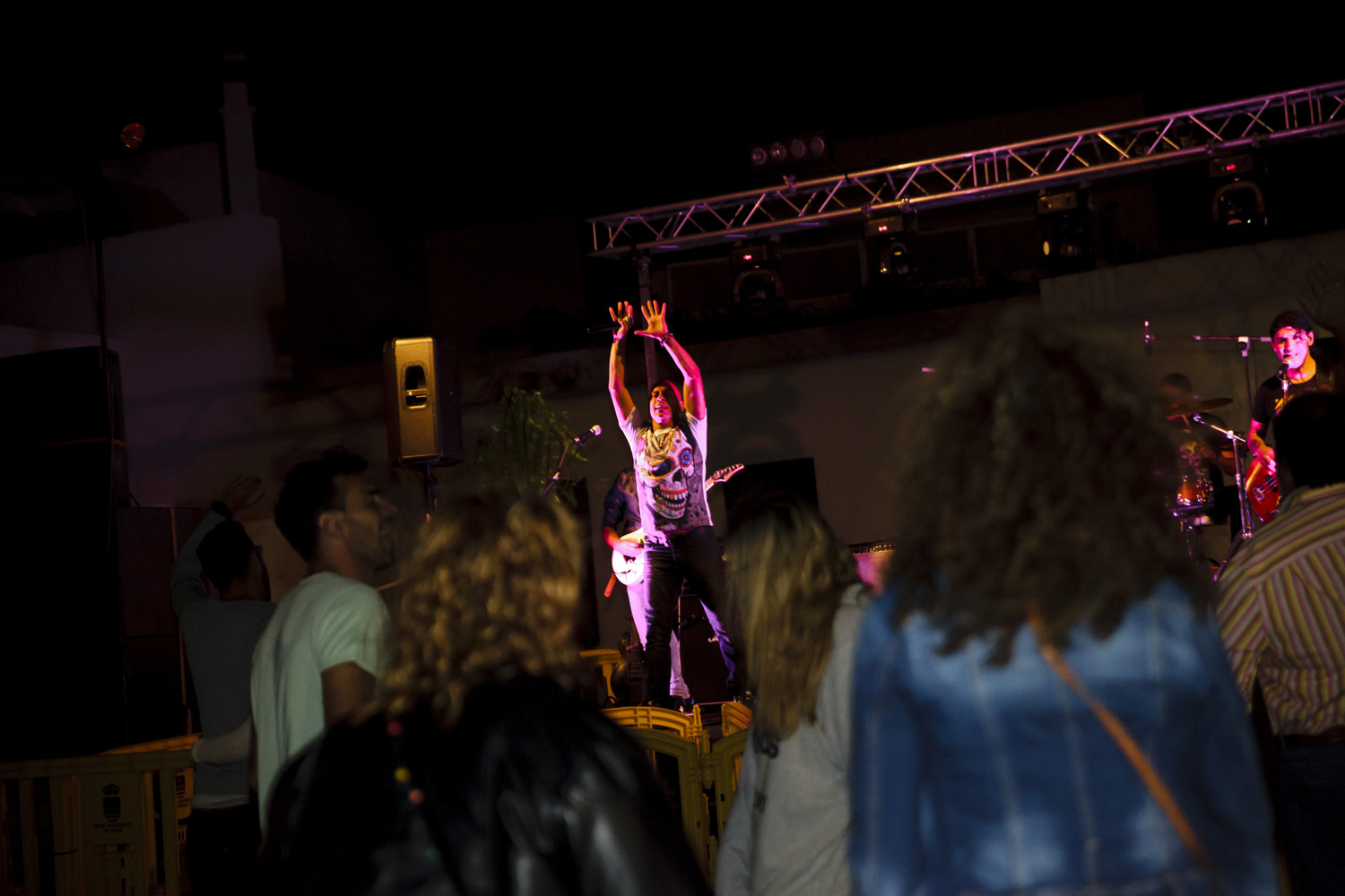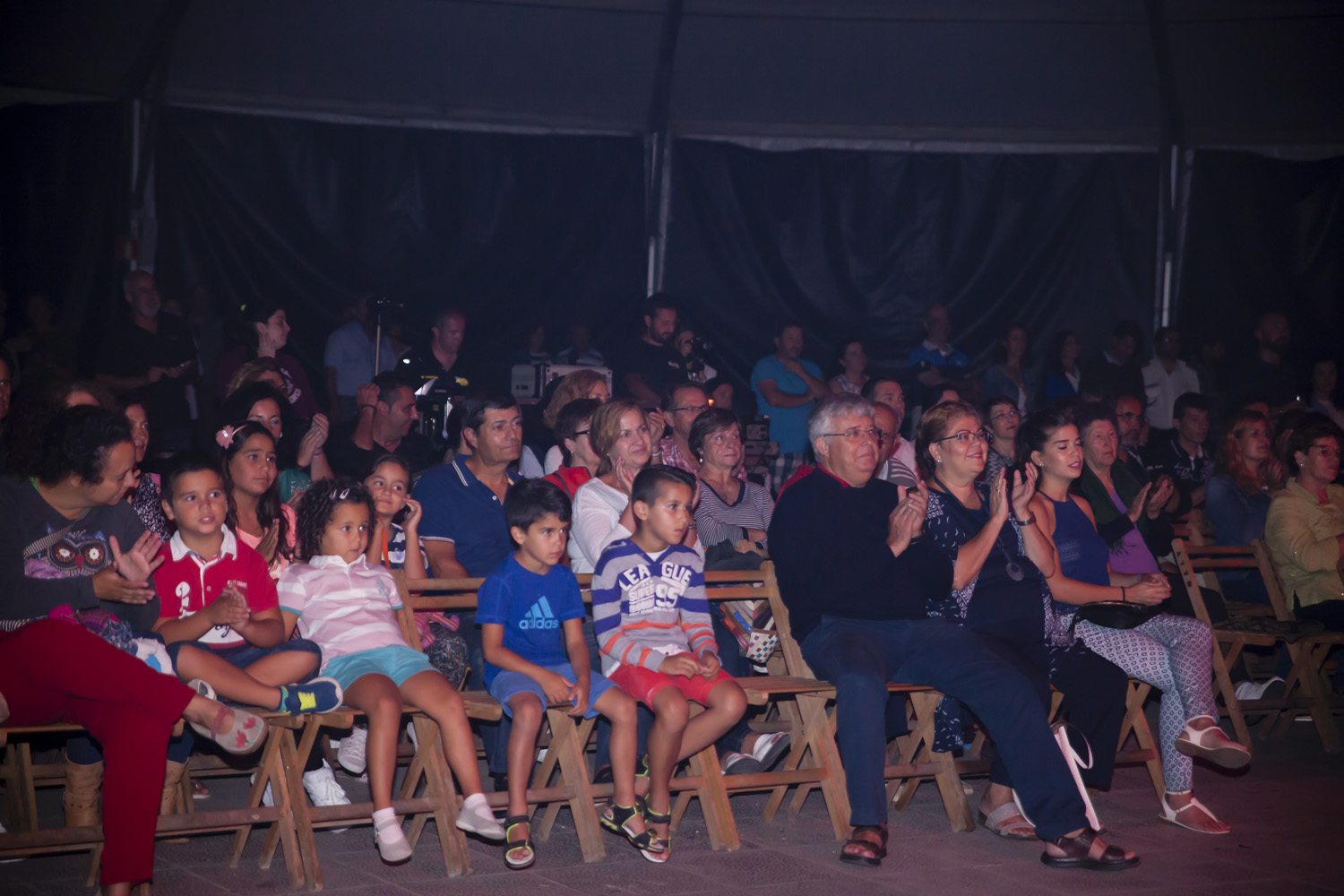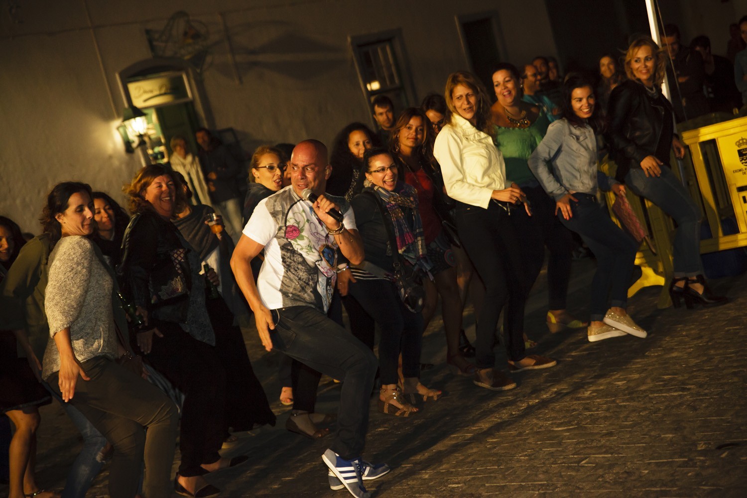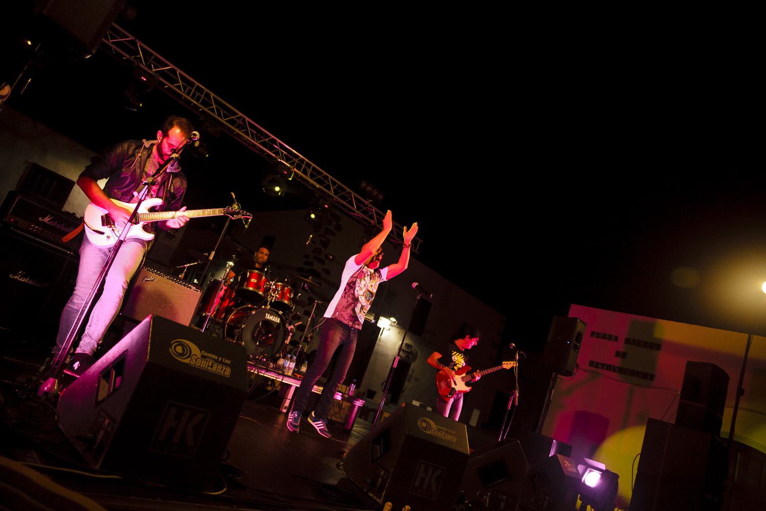 Una vez finalizada la Santa Misa, se puso en marcha el cortejo procesional. Cuando la imagen de Nuestra Señora del Carmen traspasó el pórtico de la iglesia, el público la recibió con un prolongado aplauso. Acto seguido la banda de música de Teguise, que encabezaba la procesión, se encargó de marcar el paso procesional interpretando varias composiciones propias para estos actos.