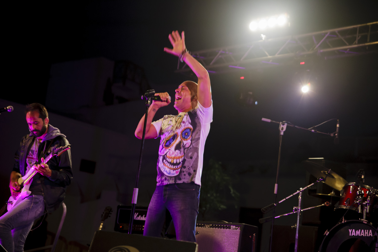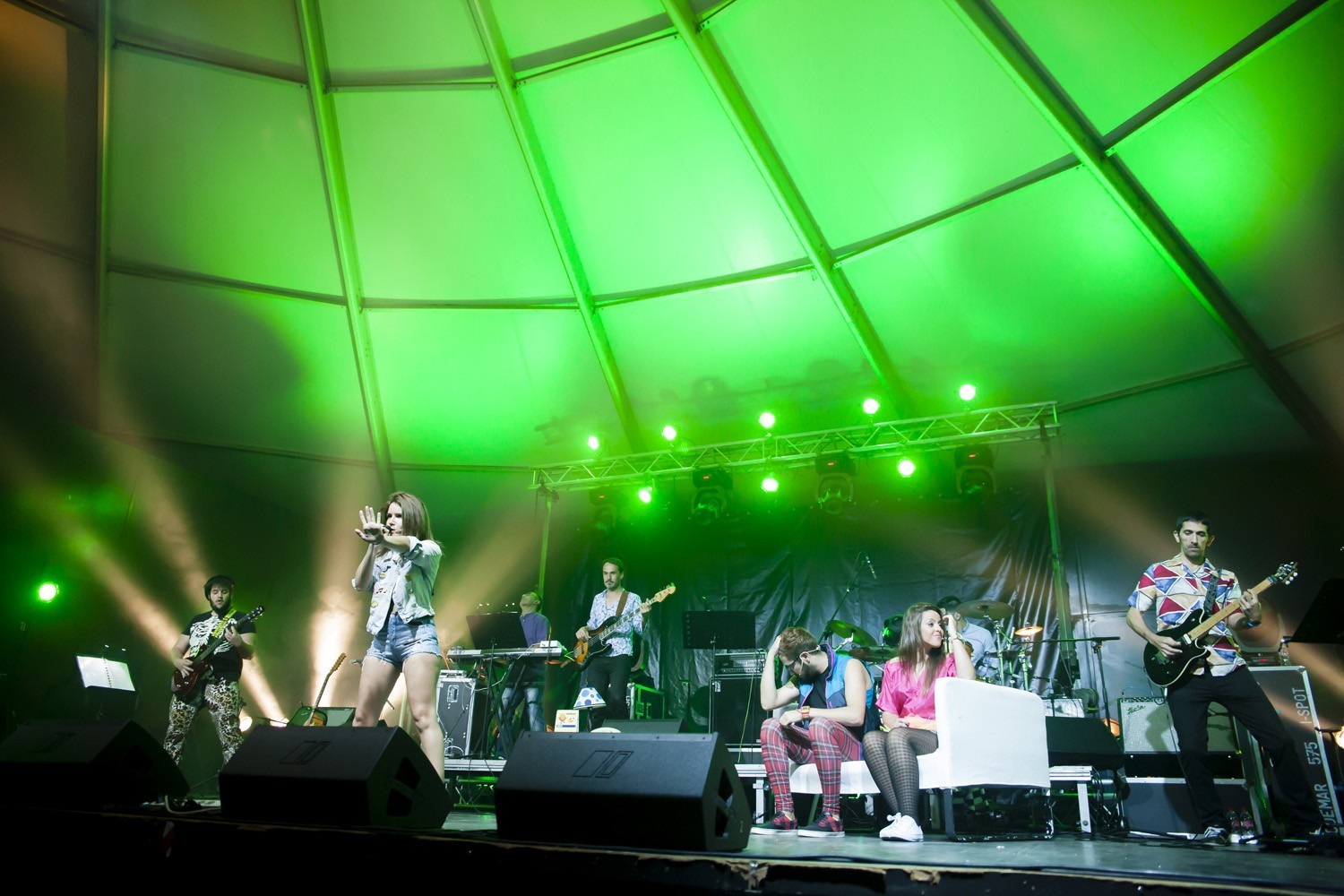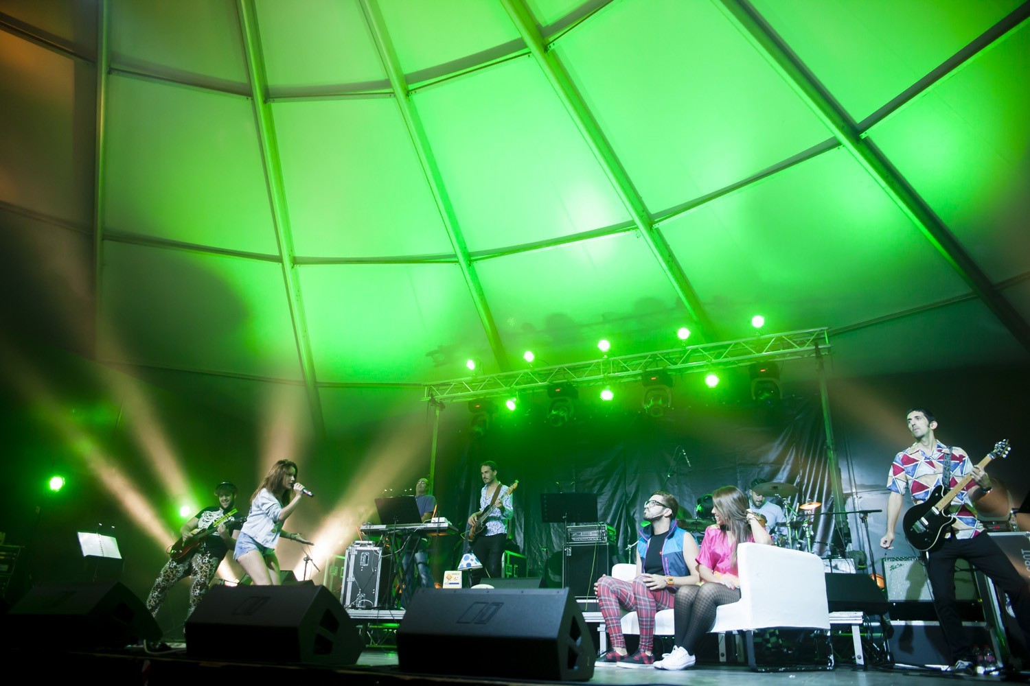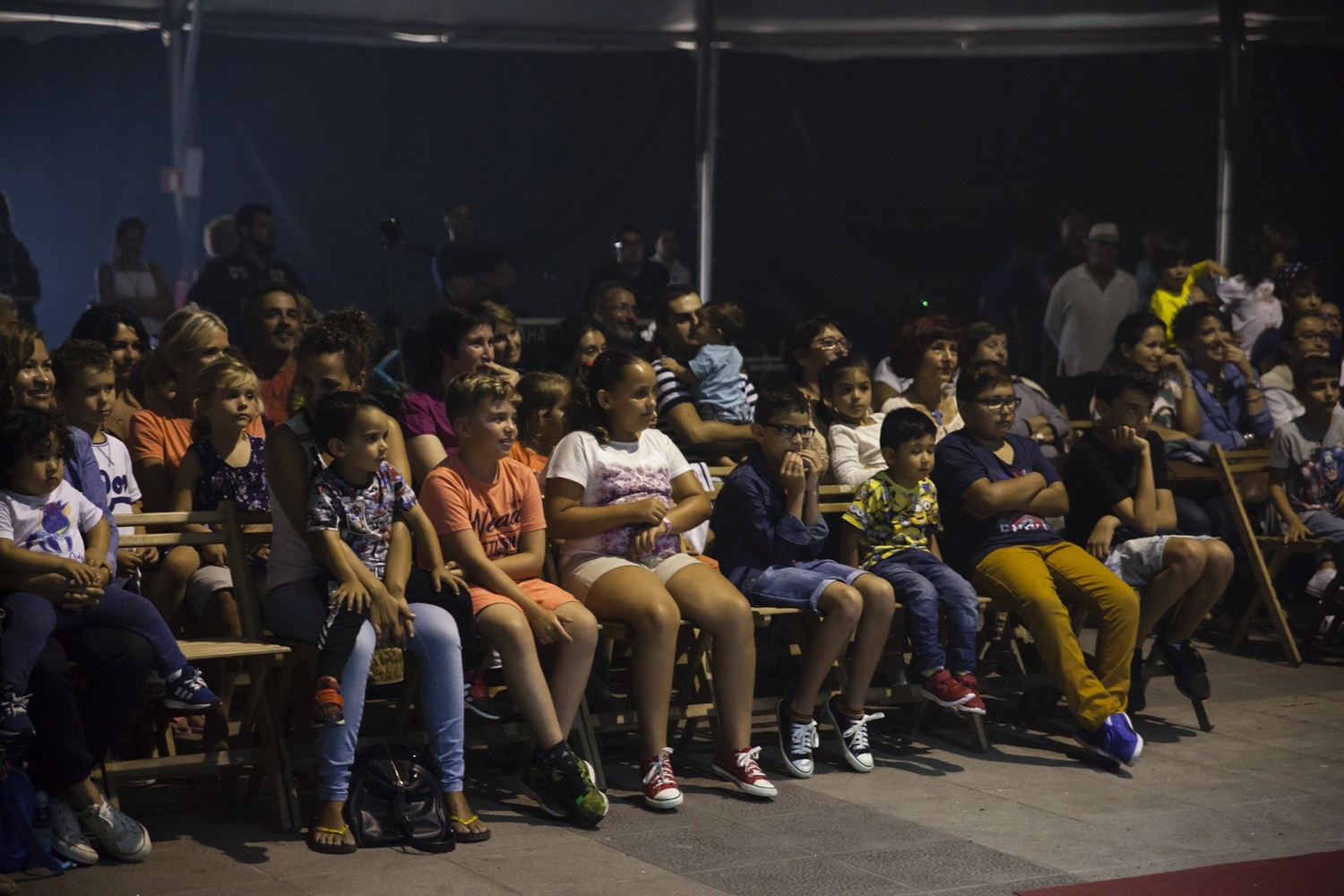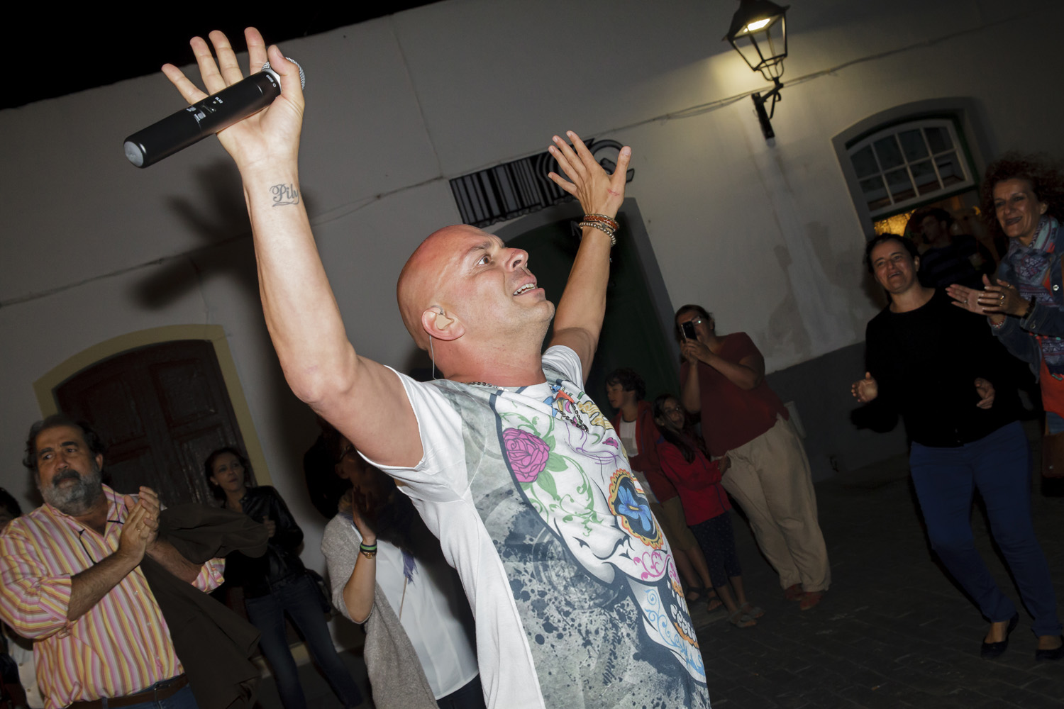 Una vez finalizada la Santa Misa, se puso en marcha el cortejo procesional. Cuando la imagen de Nuestra Señora del Carmen traspasó el pórtico de la iglesia, el público la recibió con un prolongado aplauso. Acto seguido la banda de música de Teguise, que encabezaba la procesión, se encargó de marcar el paso procesional interpretando varias composiciones propias para estos actos.