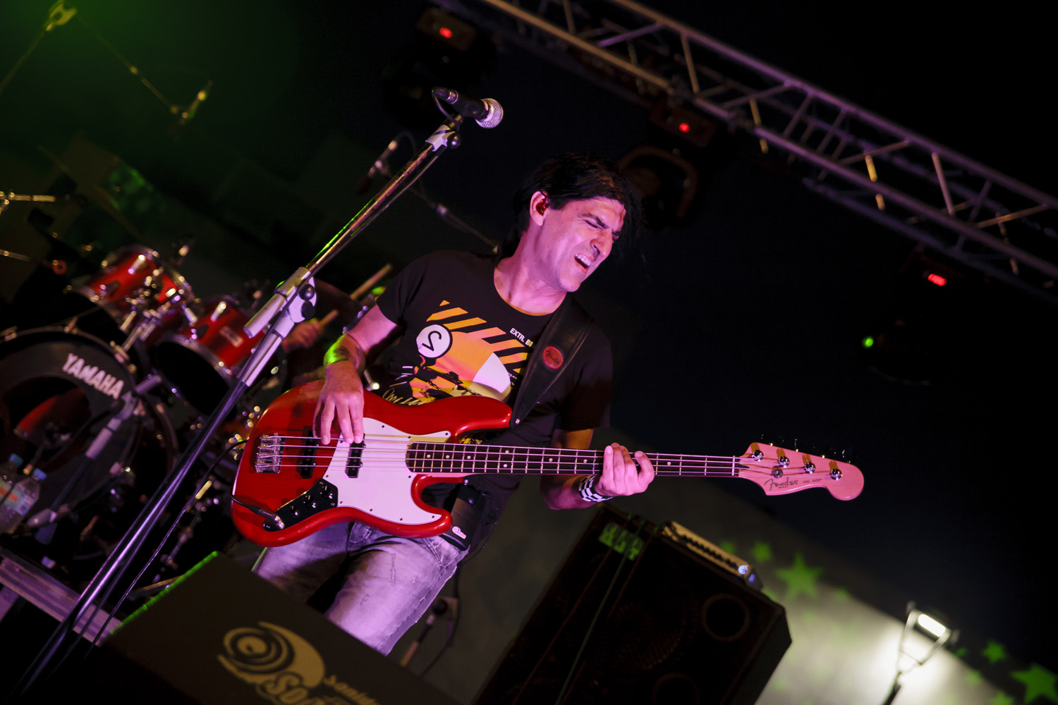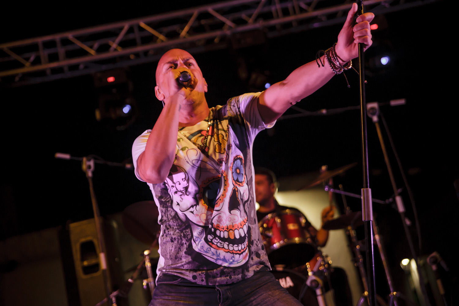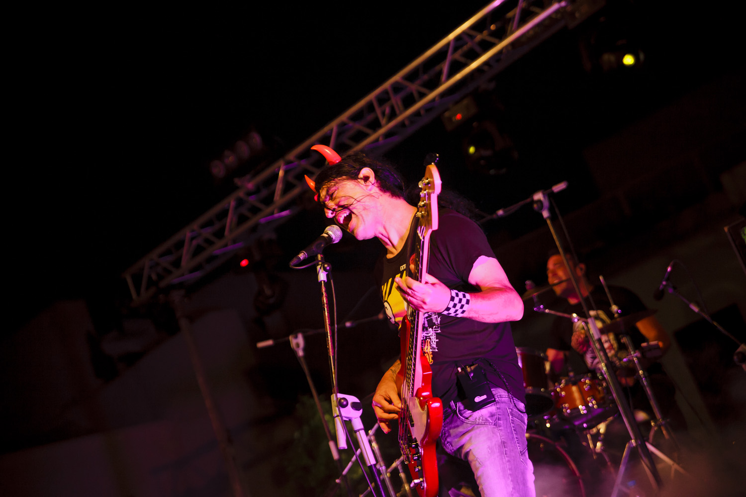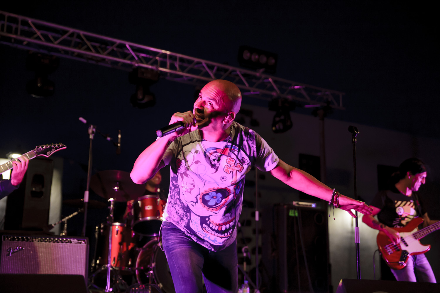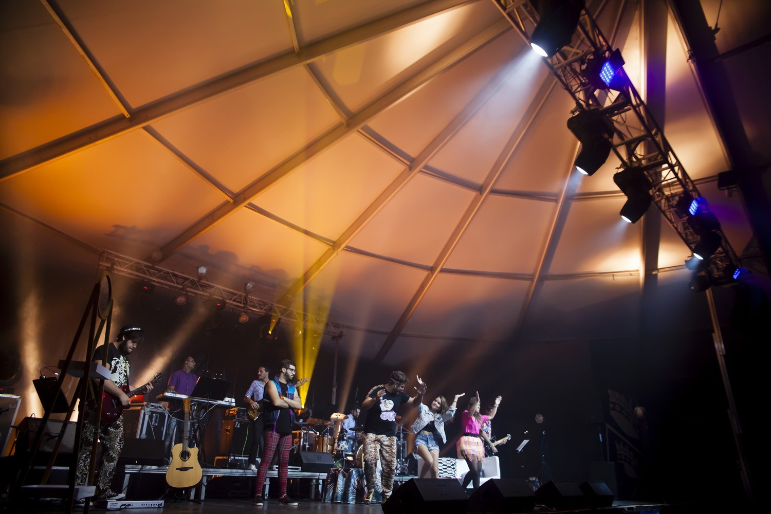 Una vez finalizada la Santa Misa, se puso en marcha el cortejo procesional. Cuando la imagen de Nuestra Señora del Carmen traspasó el pórtico de la iglesia, el público la recibió con un prolongado aplauso. Acto seguido la banda de música de Teguise, que encabezaba la procesión, se encargó de marcar el paso procesional interpretando varias composiciones propias para estos actos.