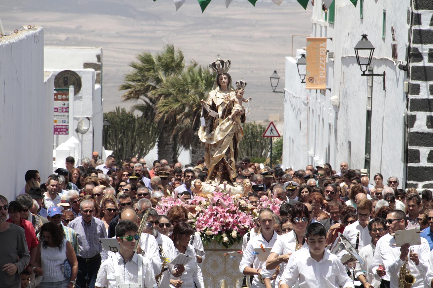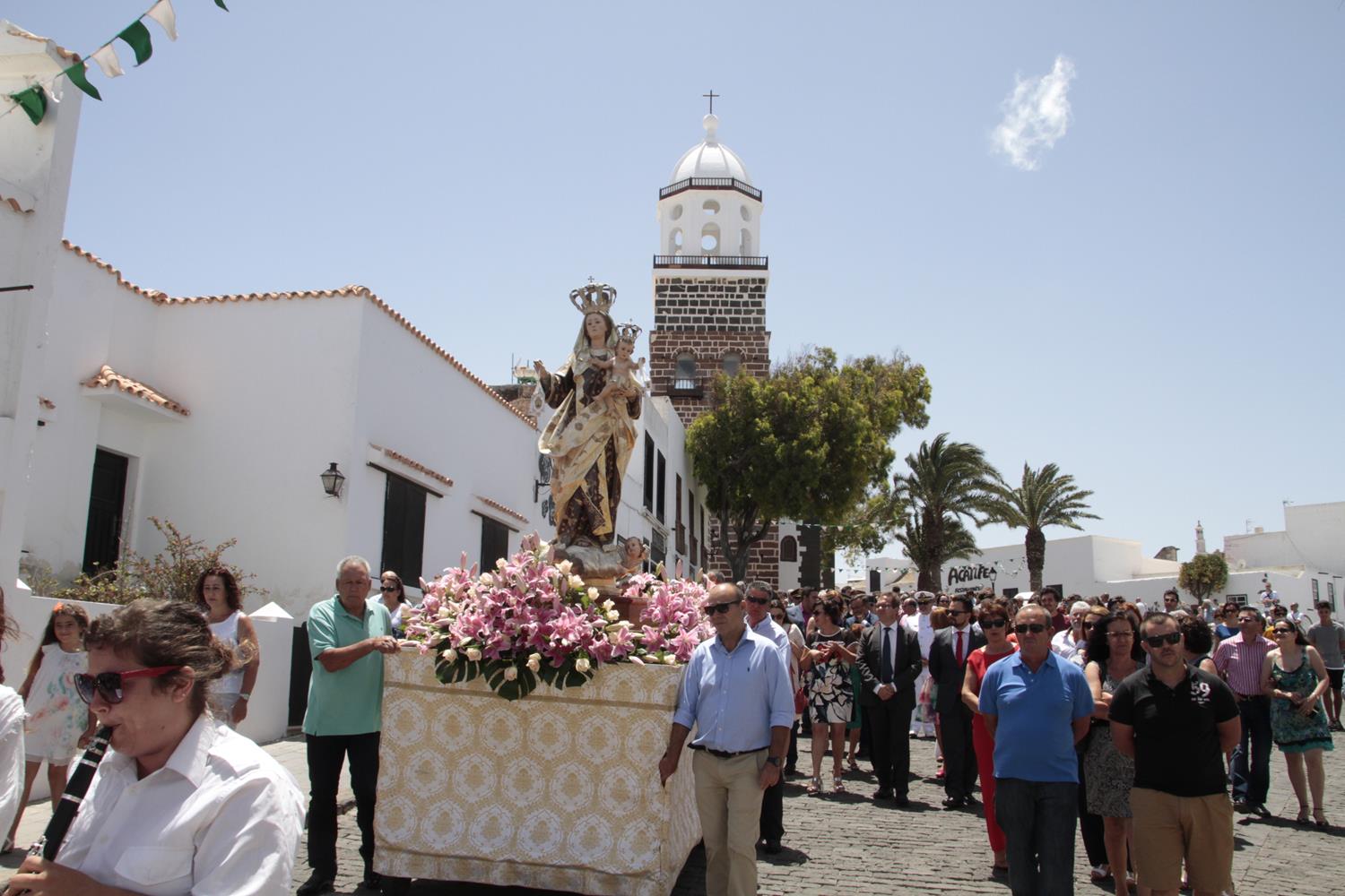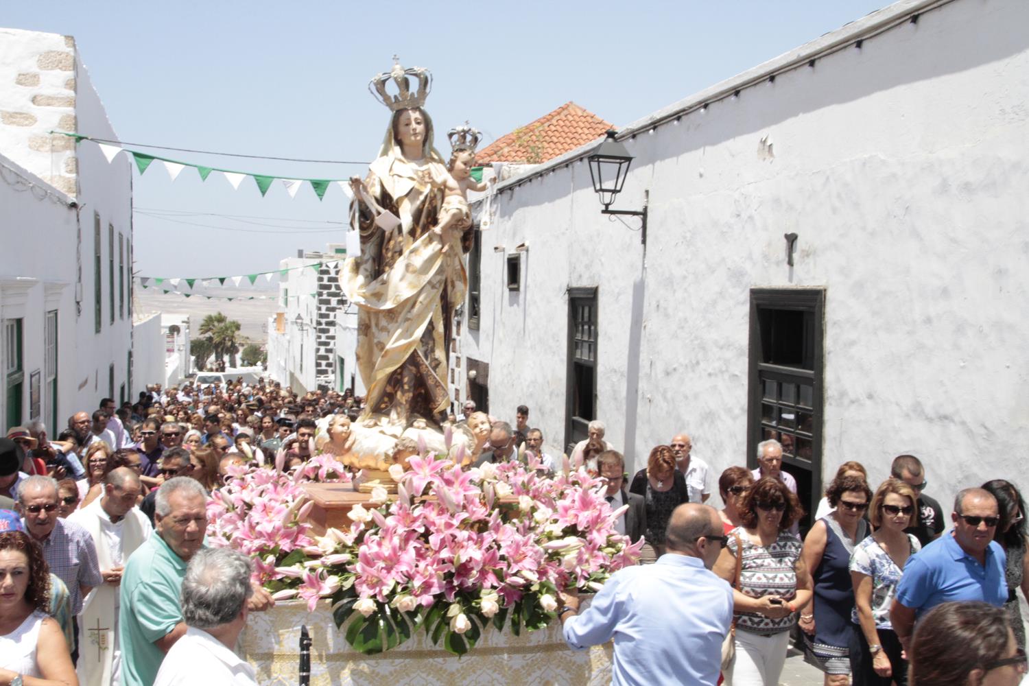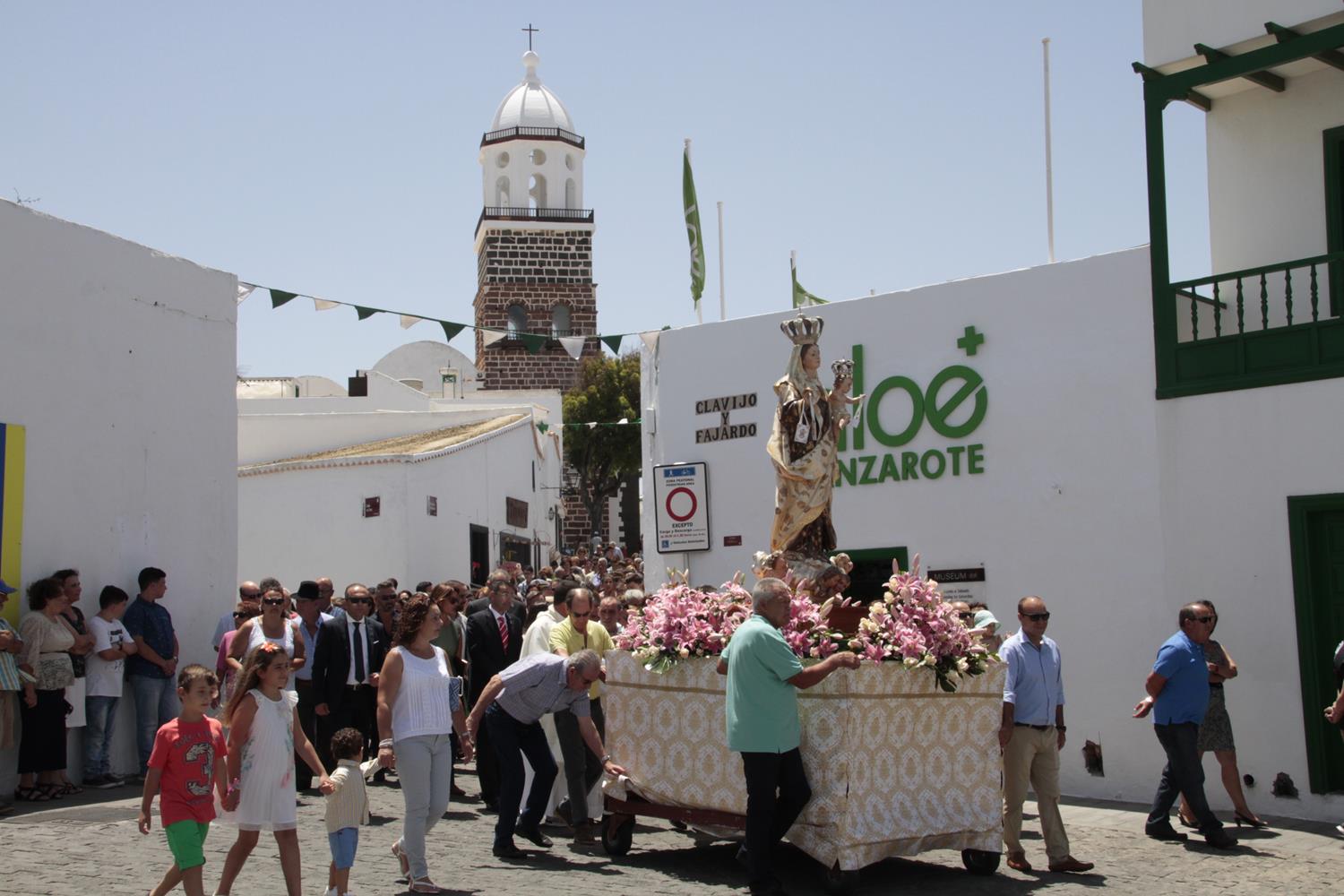 La imagen de la Virgen del Carmen recorrió varias calles del casco histórico de Teguise acompañada de los sacerdotes oficiantes, las autoridades civiles y militares así como el numeroso público. Vecinos de Teguise y de otros rincones de la isla que cada año se dan cita para participar de una fiesta la cual también se extiende a otros puntos geográficos de Lanzarote, en especial a la isla de La Graciosa, donde varios miles de personas participaron en la procesión marítima. La agrupación folclórica La Gran Aldea fue la encargada de acompañar a la Patrona desde la Iglesia Virgen del Mar hasta el muelle, donde a bordo de la embarcación Biosfera Fishing recorrió la costa graciosera para luego recibir la tradicional ofrenda ya en tierra.