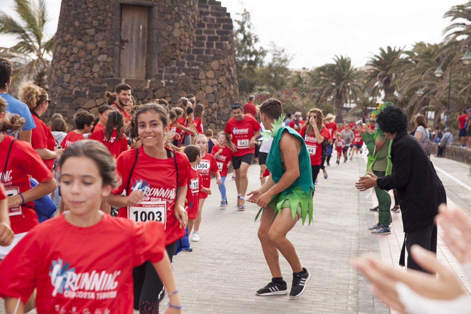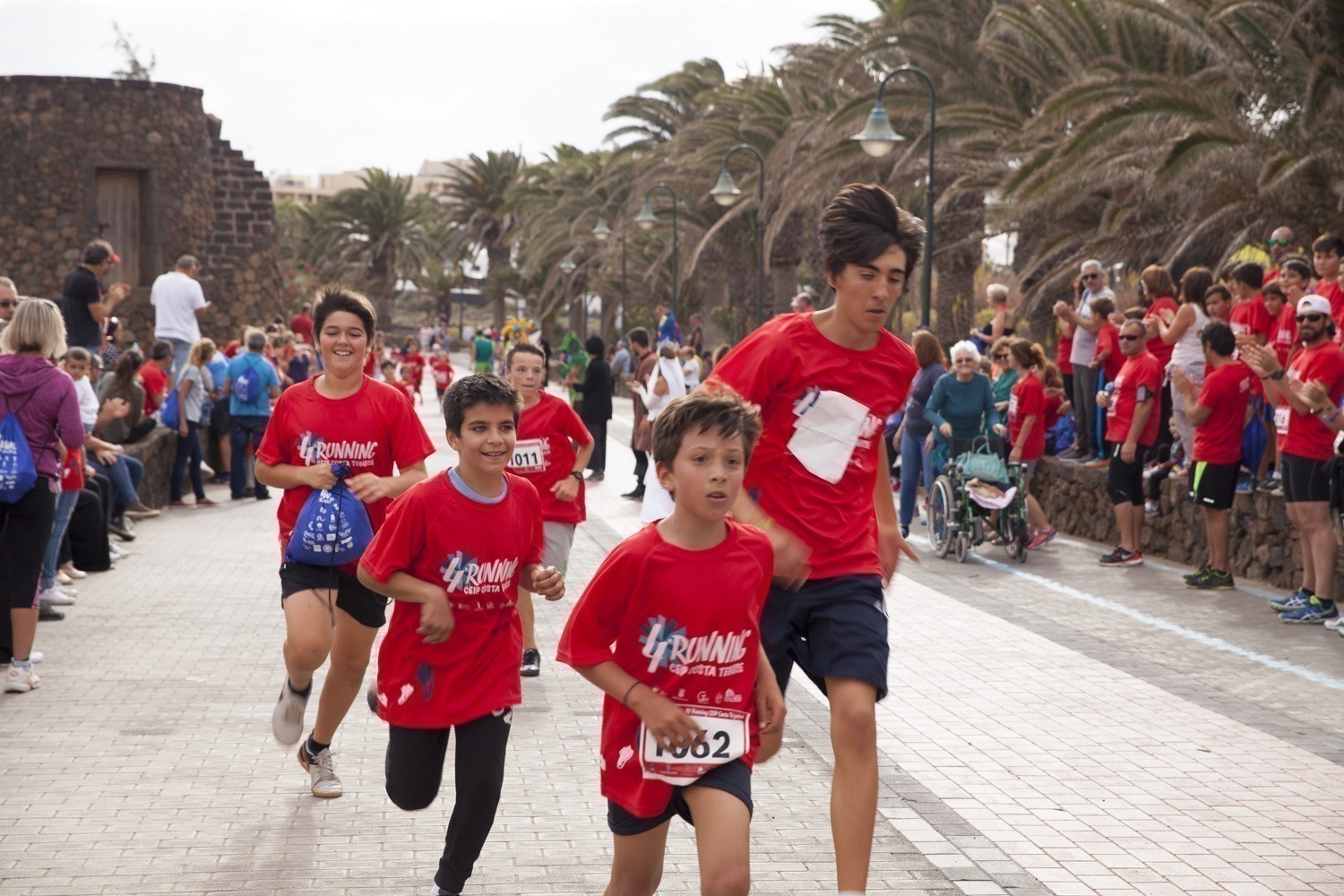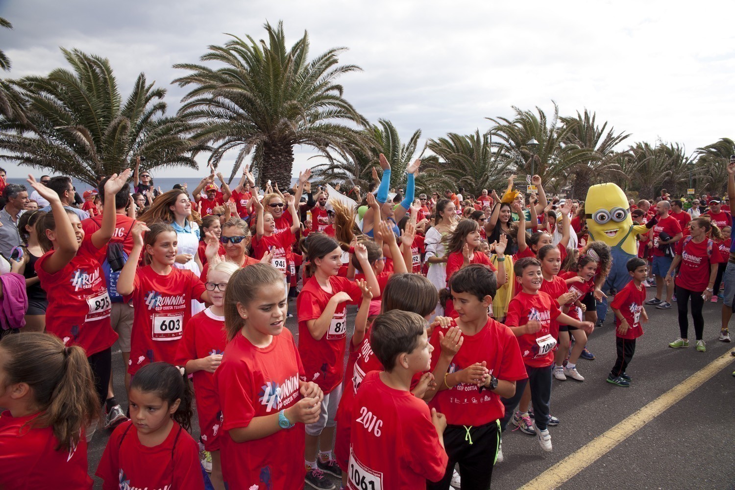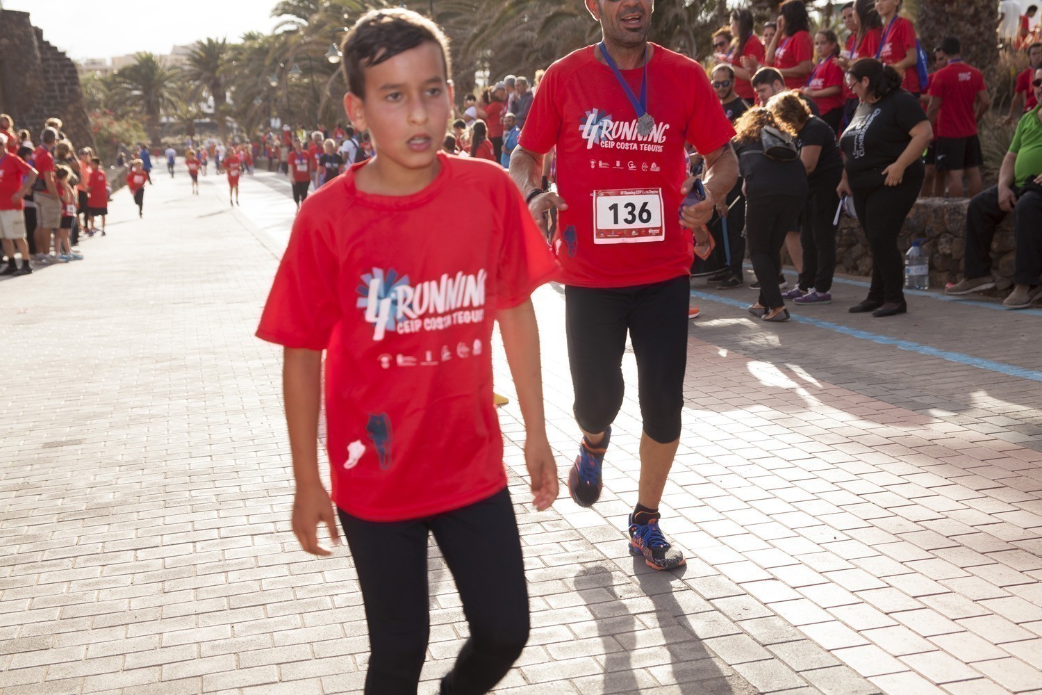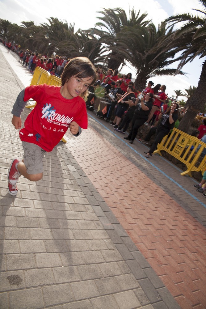 La Avenida Marítima de Playa Bastián se llenó de niños, padres y profesores en la cuarta edición de la Running CEIP Costa Teguise celebrada este viernes, formando una gran marea roja de corredores en una prueba familiar que batió nuevo récord de participación con 1.200 inscritos, más otras tantas personas que acudieron a disfrutar de una actividad que se han convertido en cita ineludible para toda la comunidad educativa de Costa Teguise.
