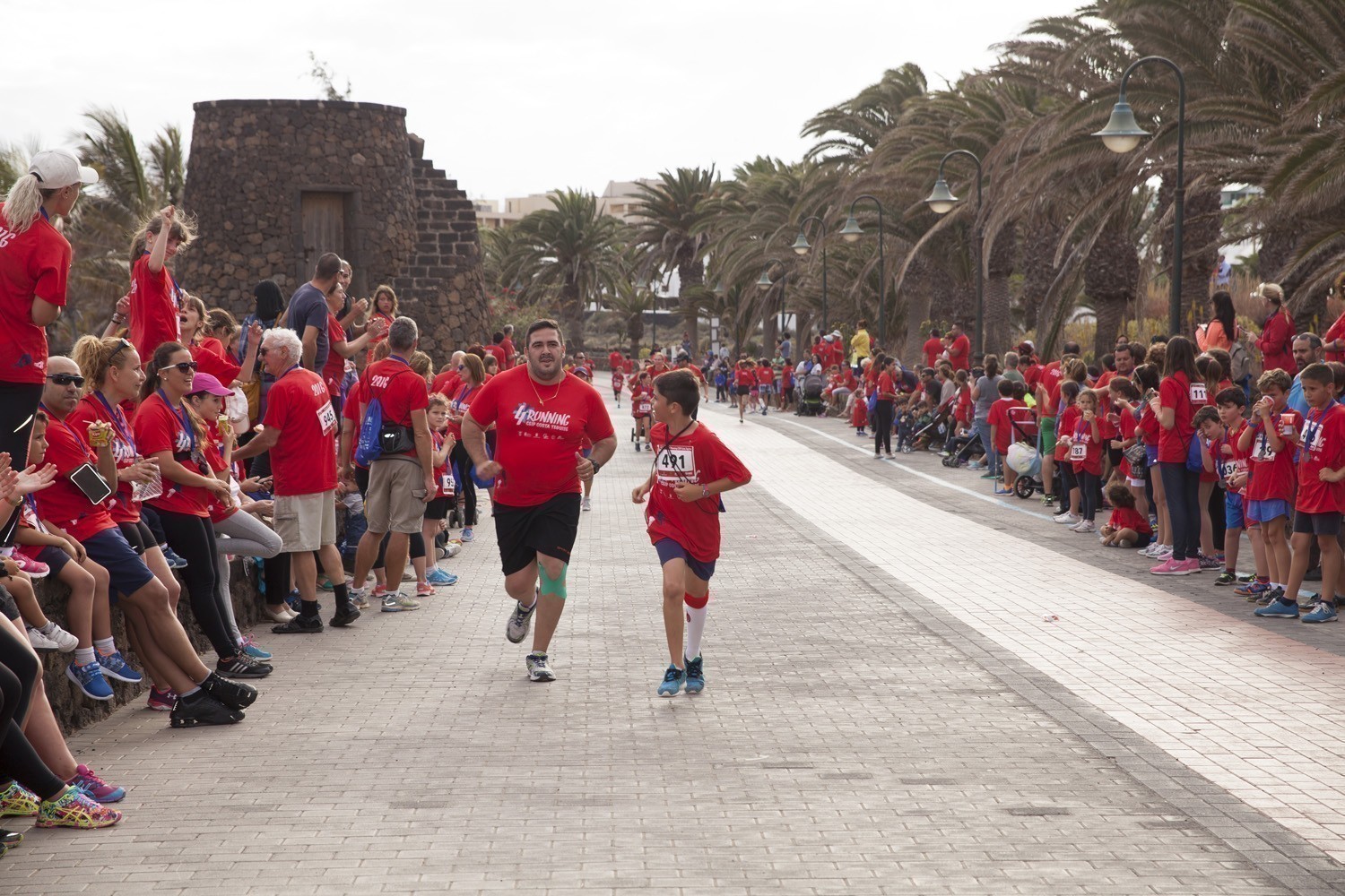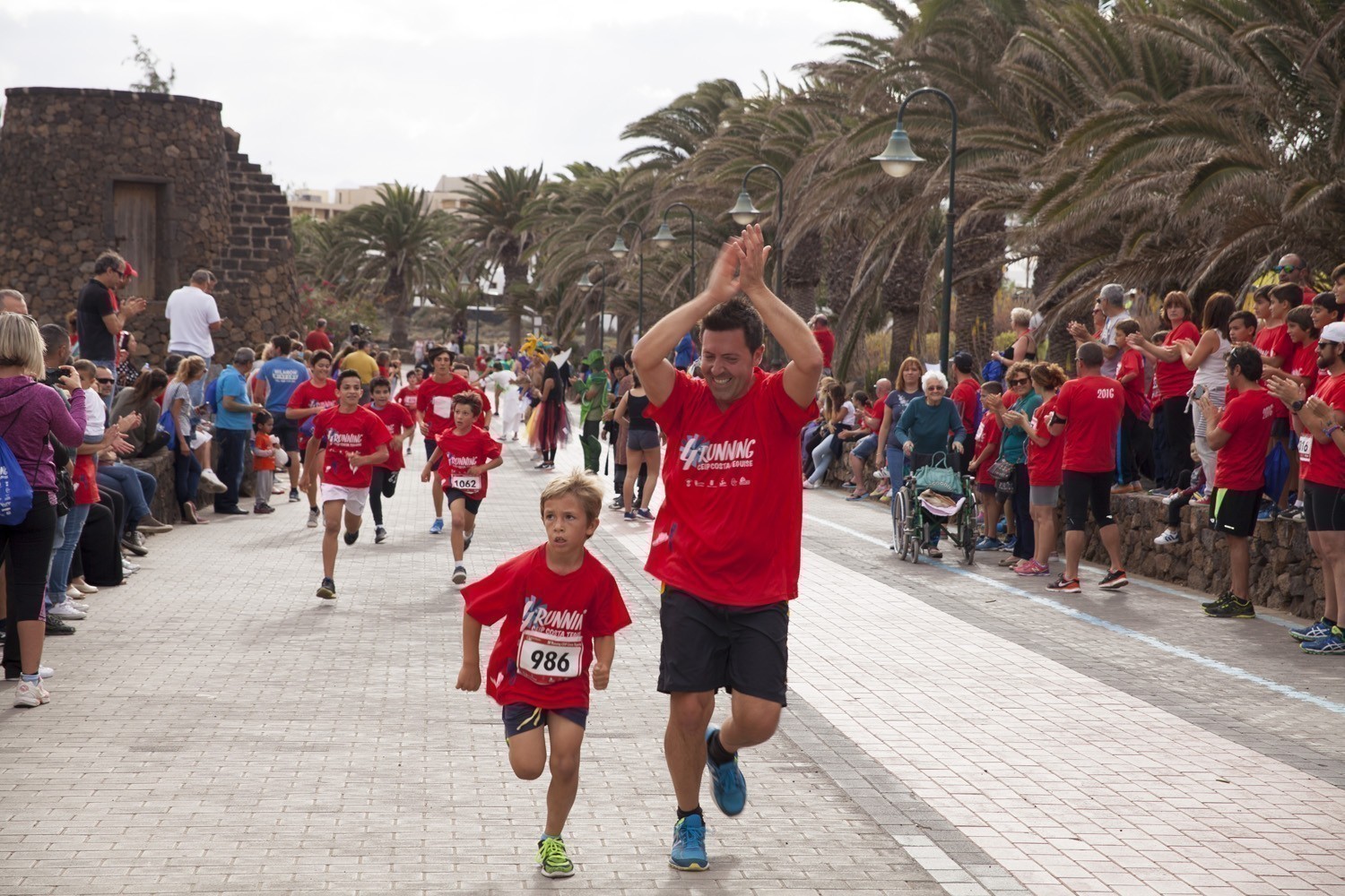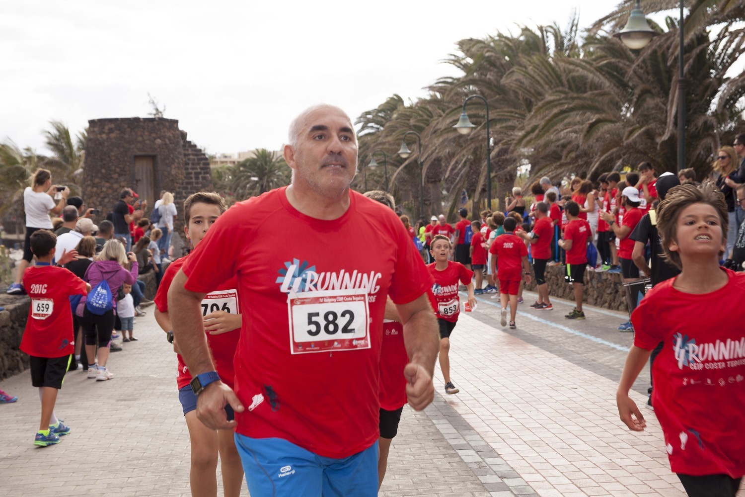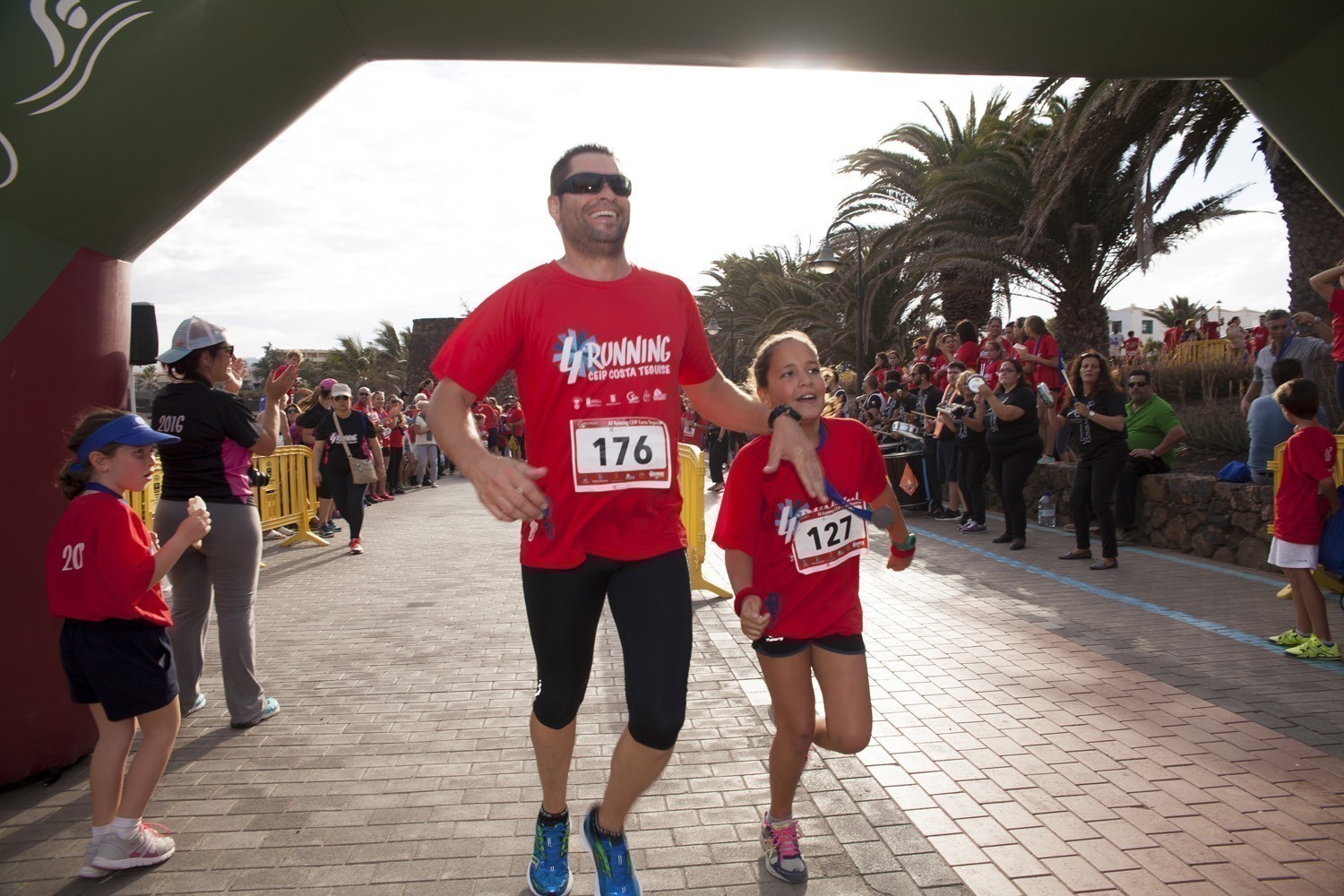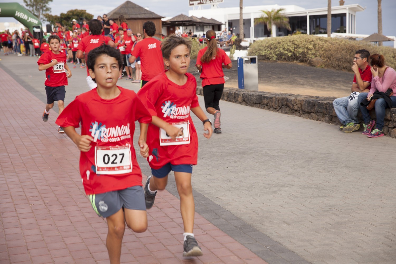 La Avenida Marítima de Playa Bastián se llenó de niños, padres y profesores en la cuarta edición de la Running CEIP Costa Teguise celebrada este viernes, formando una gran marea roja de corredores en una prueba familiar que batió nuevo récord de participación con 1.200 inscritos, más otras tantas personas que acudieron a disfrutar de una actividad que se han convertido en cita ineludible para toda la comunidad educativa de Costa Teguise.