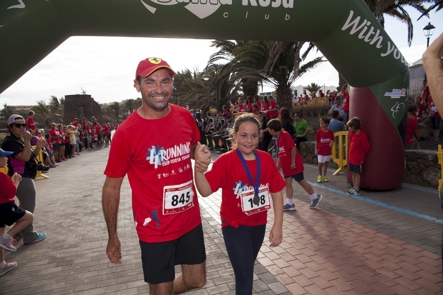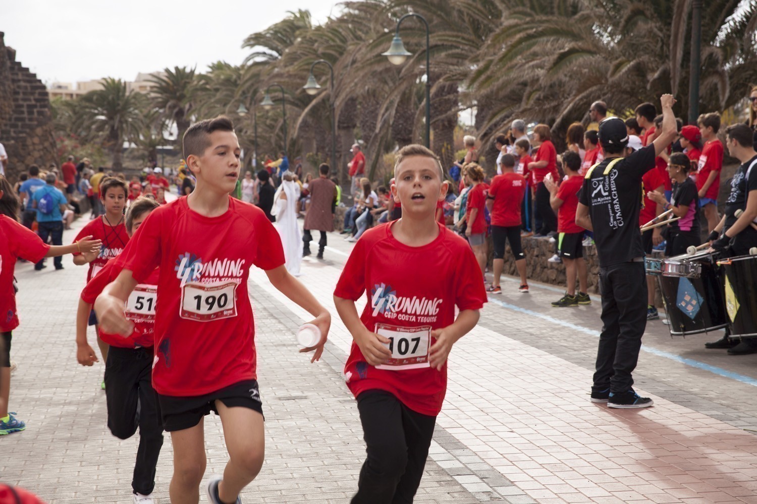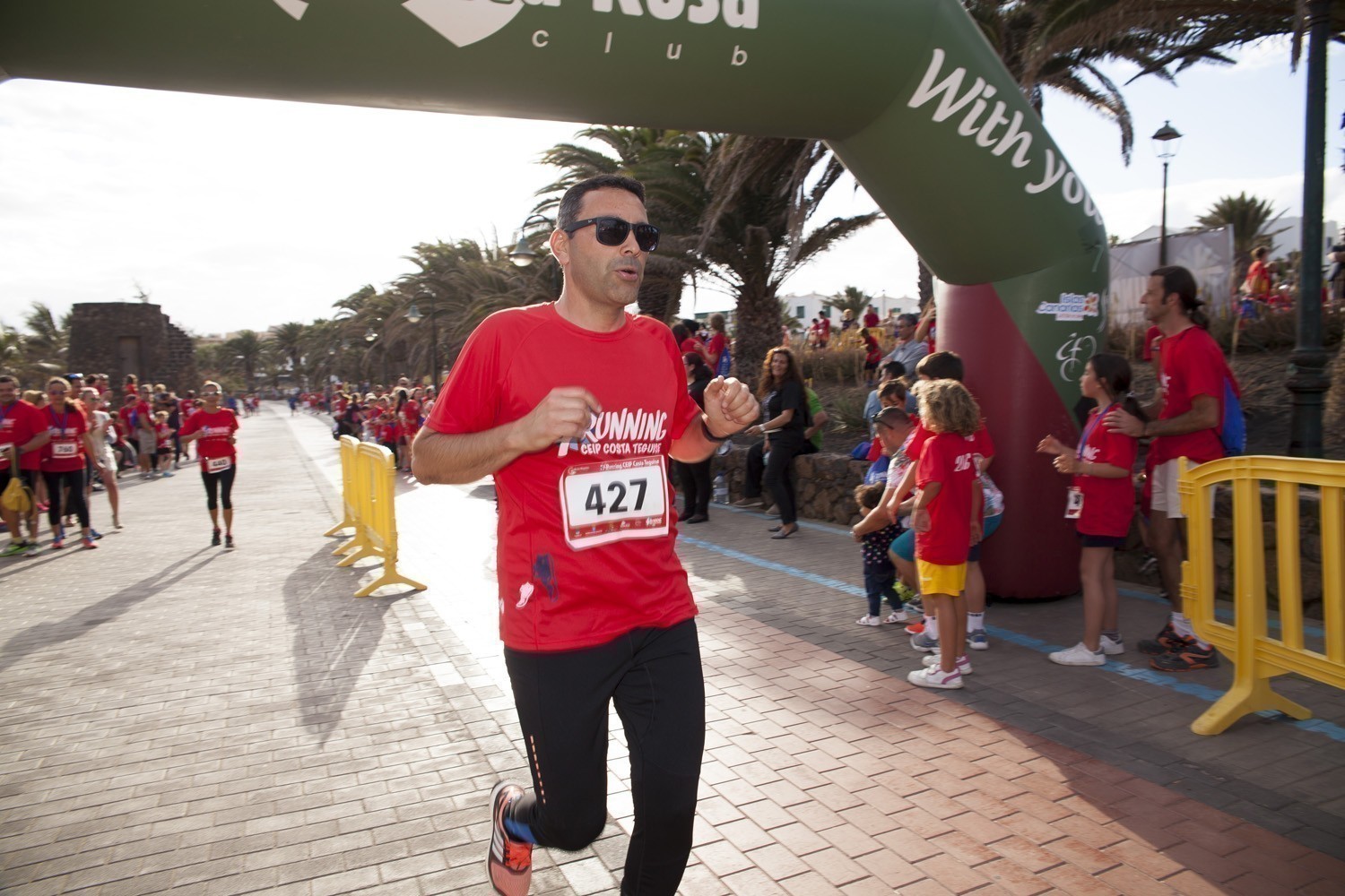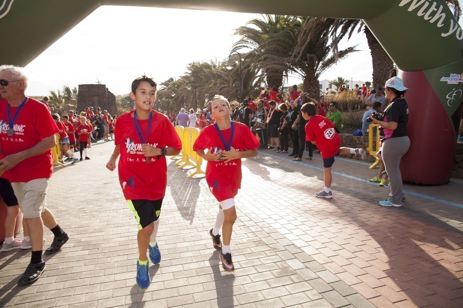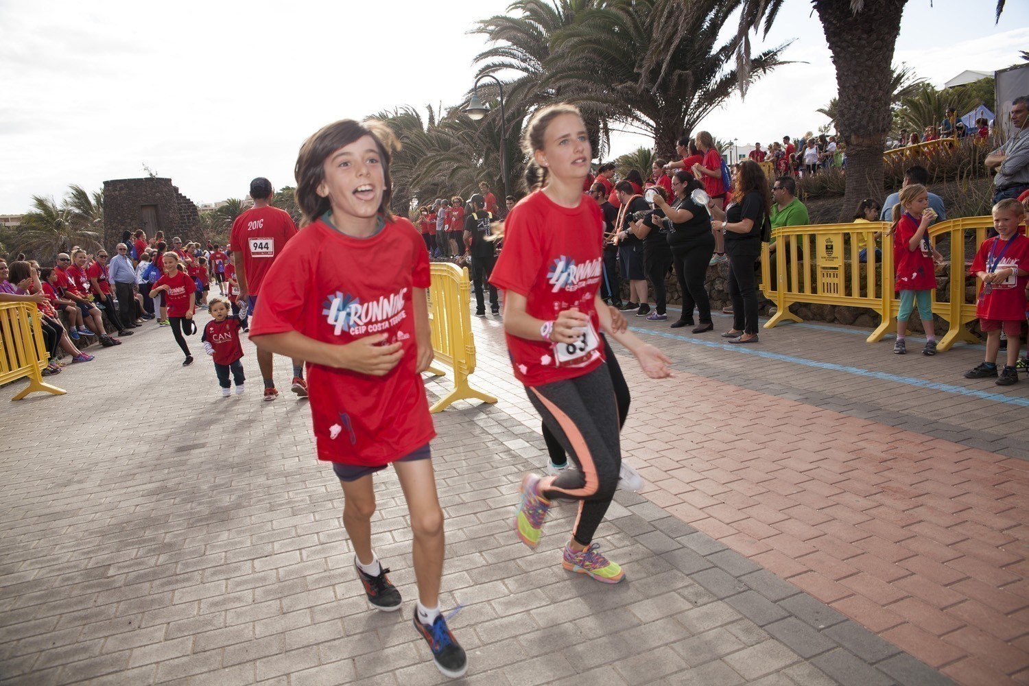 La Avenida Marítima de Playa Bastián se llenó de niños, padres y profesores en la cuarta edición de la Running CEIP Costa Teguise celebrada este viernes, formando una gran marea roja de corredores en una prueba familiar que batió nuevo récord de participación con 1.200 inscritos, más otras tantas personas que acudieron a disfrutar de una actividad que se han convertido en cita ineludible para toda la comunidad educativa de Costa Teguise.