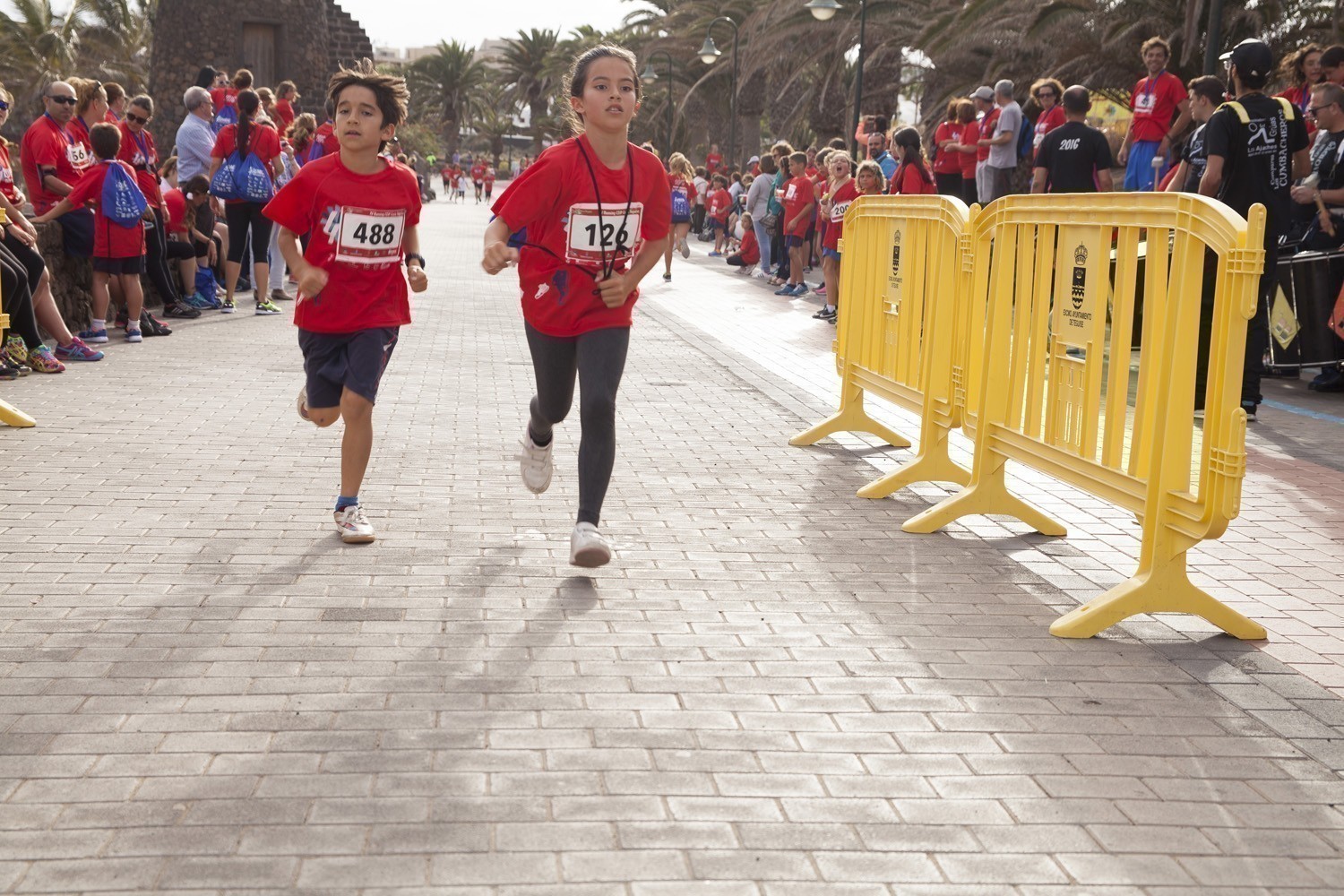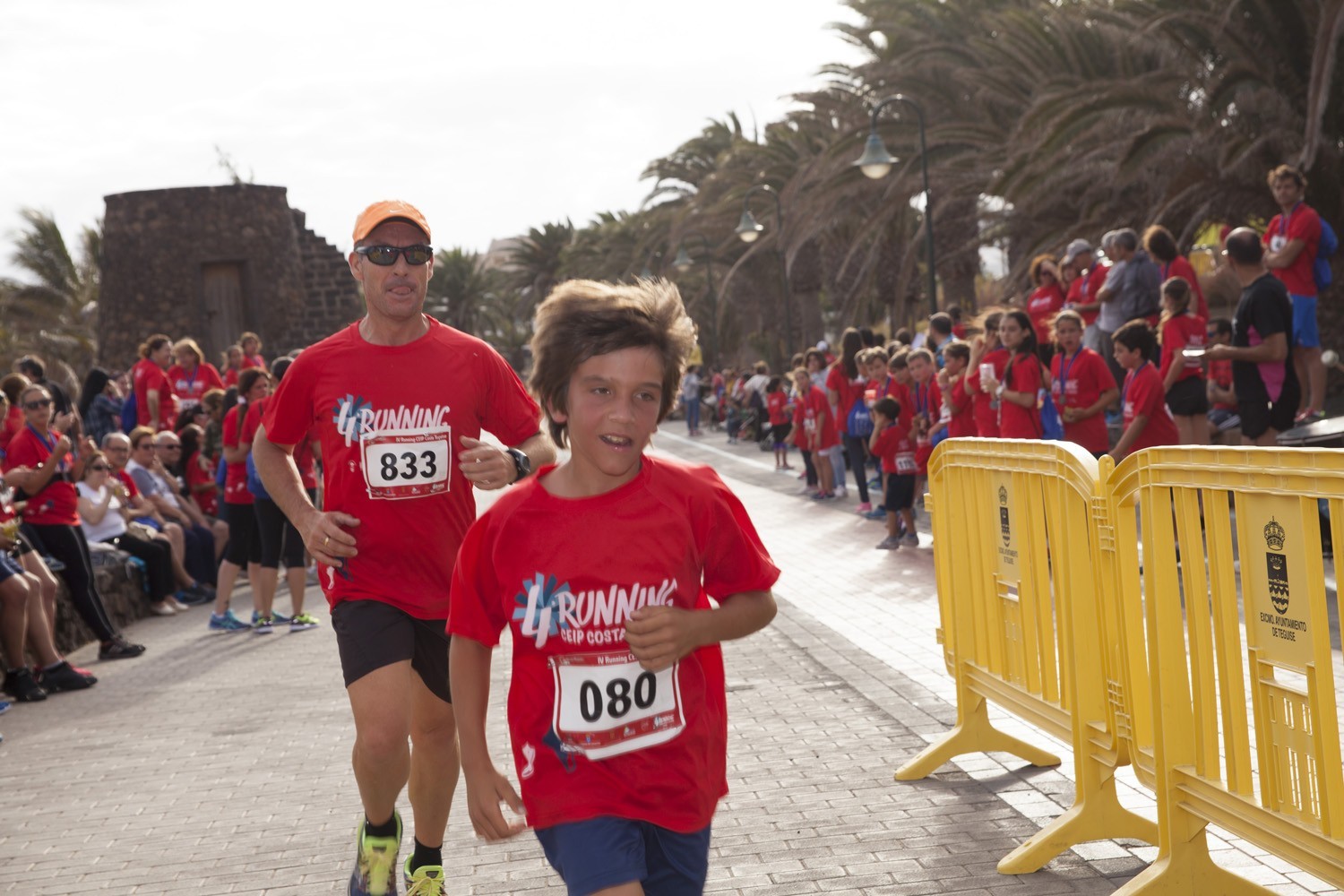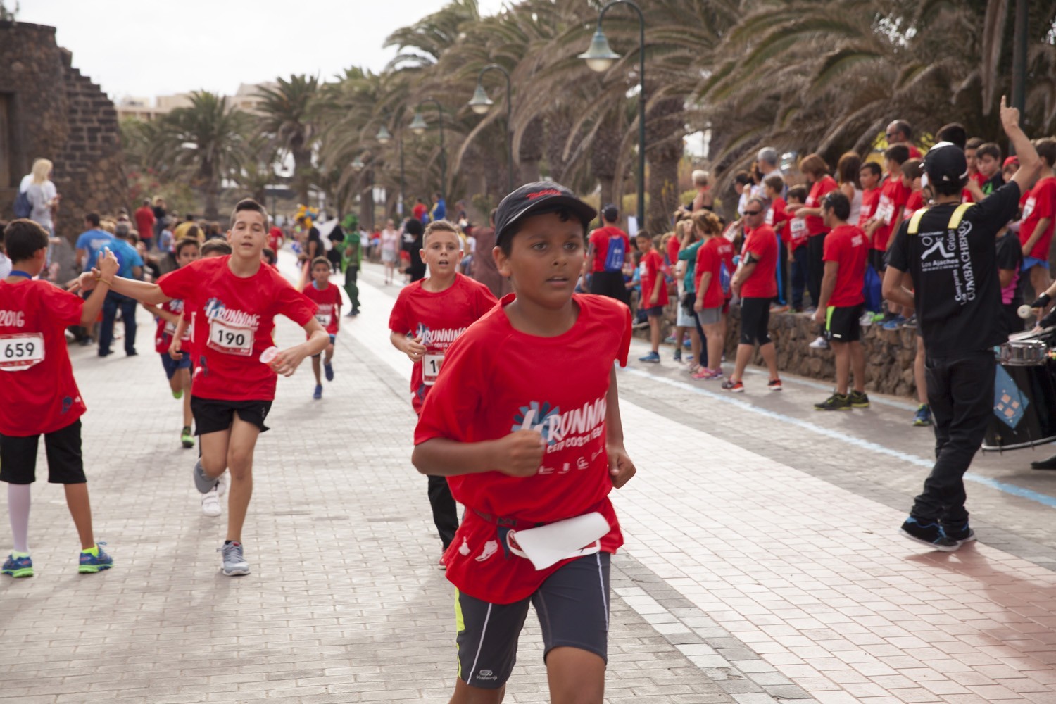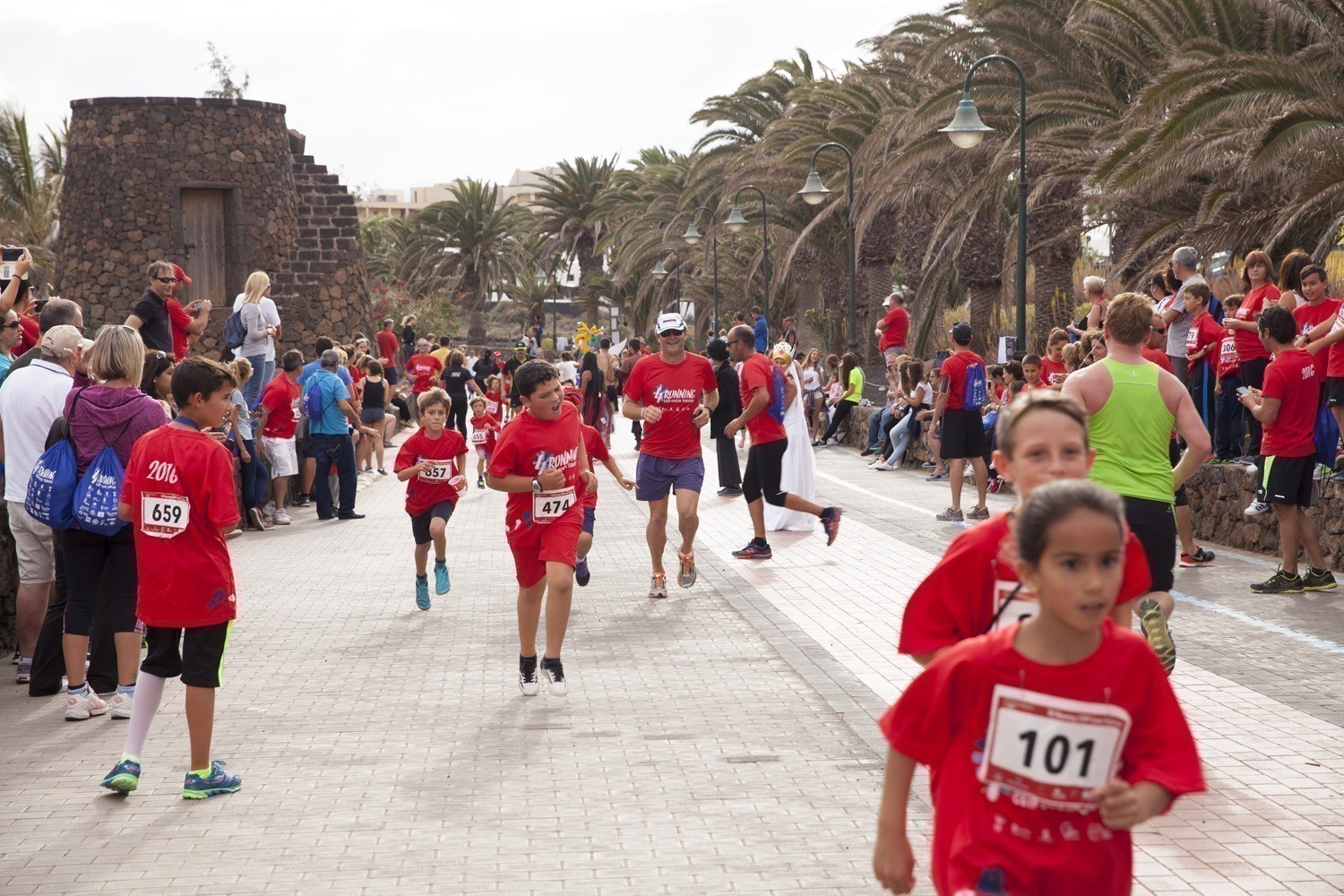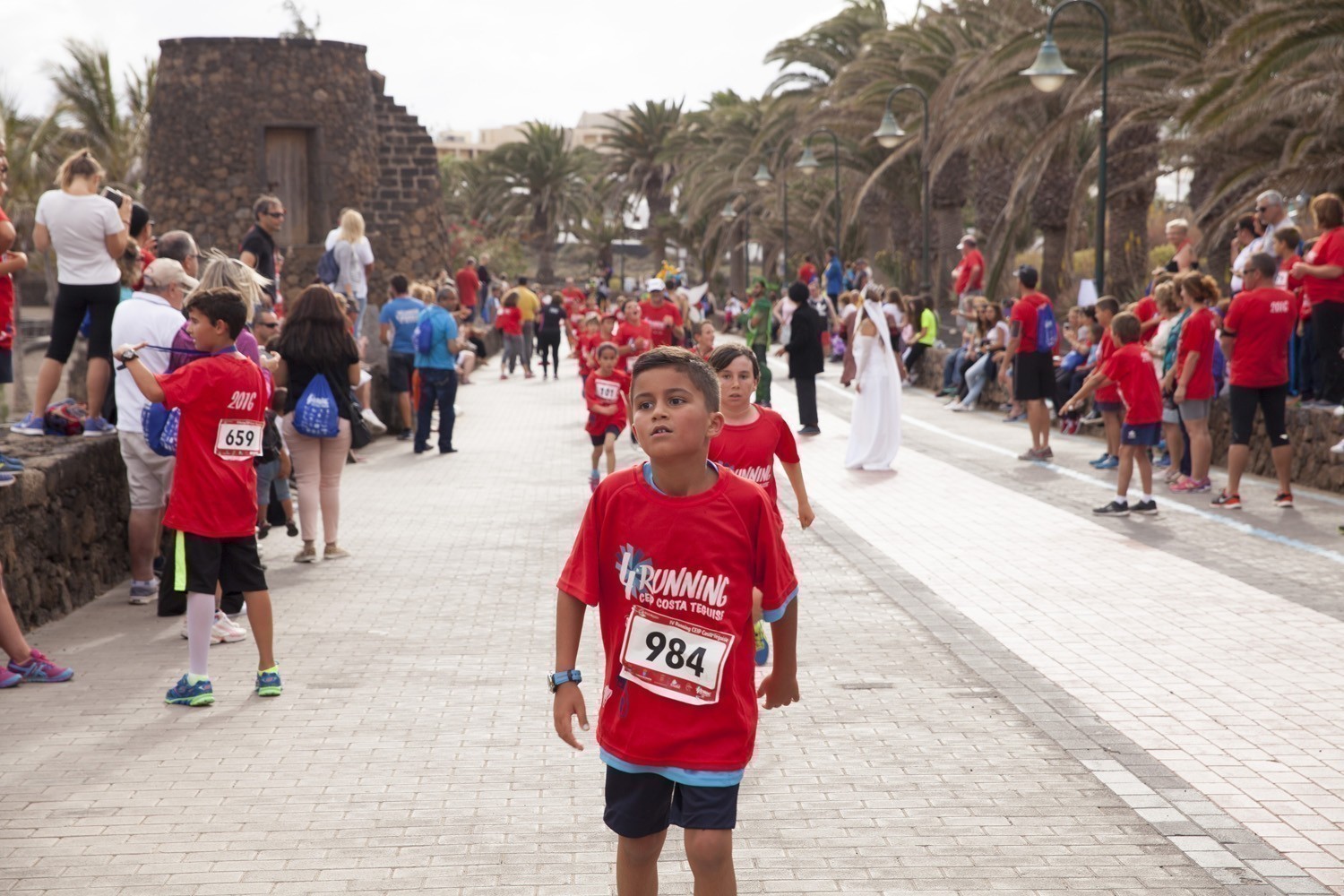 La Avenida Marítima de Playa Bastián se llenó de niños, padres y profesores en la cuarta edición de la Running CEIP Costa Teguise celebrada este viernes, formando una gran marea roja de corredores en una prueba familiar que batió nuevo récord de participación con 1.200 inscritos, más otras tantas personas que acudieron a disfrutar de una actividad que se han convertido en cita ineludible para toda la comunidad educativa de Costa Teguise.