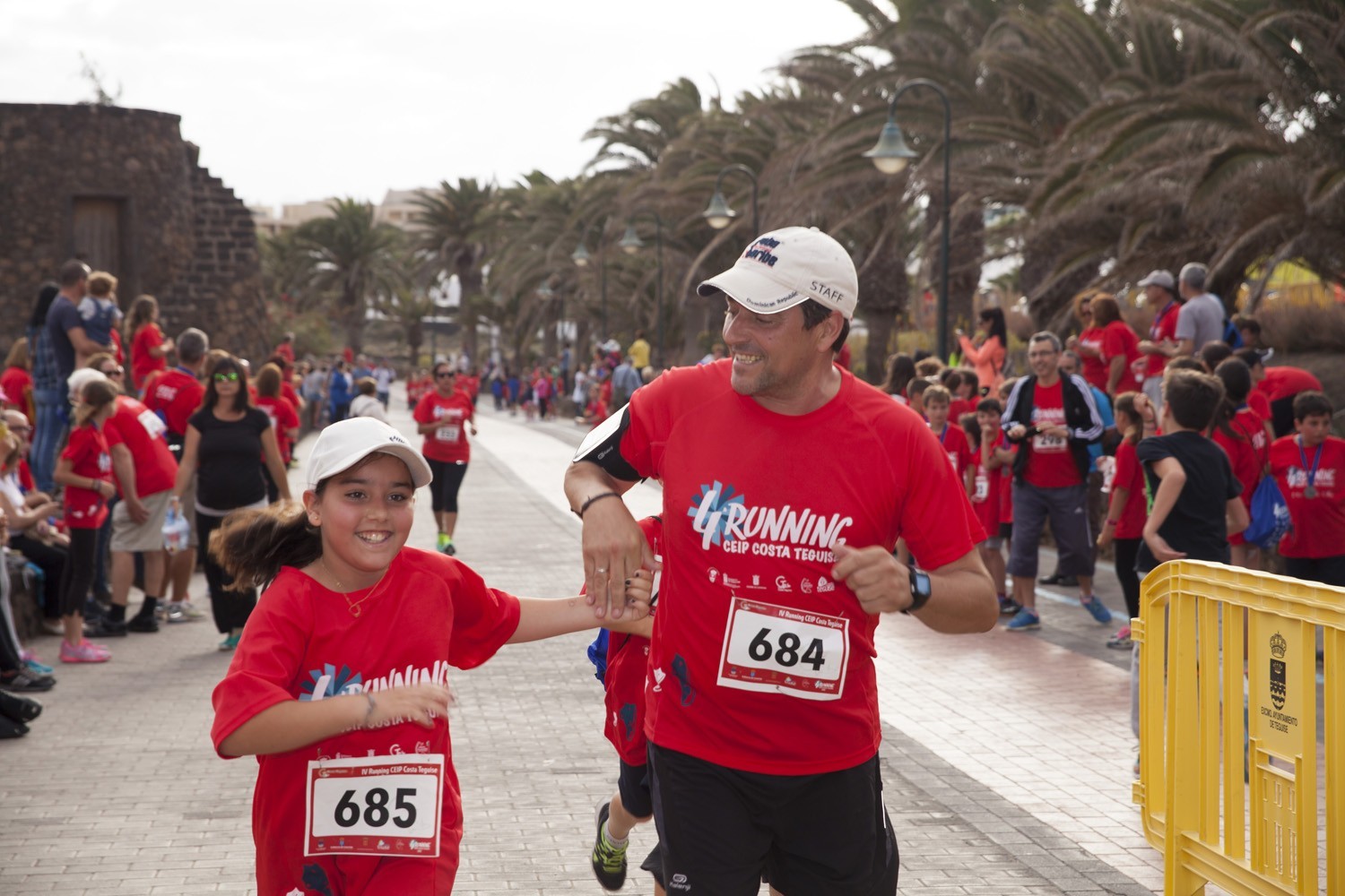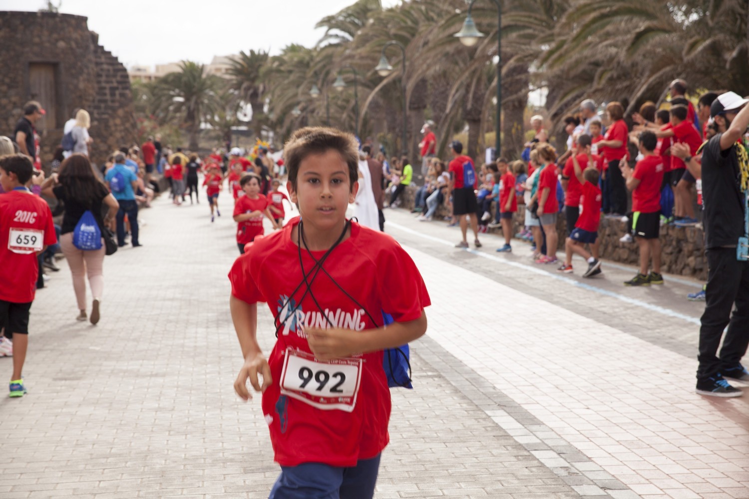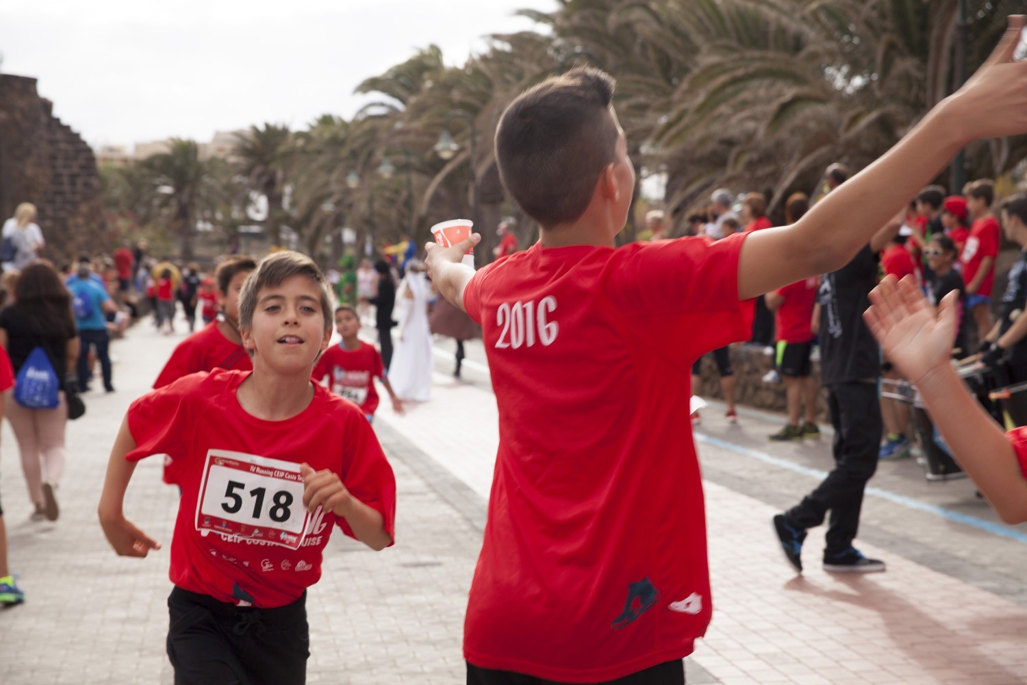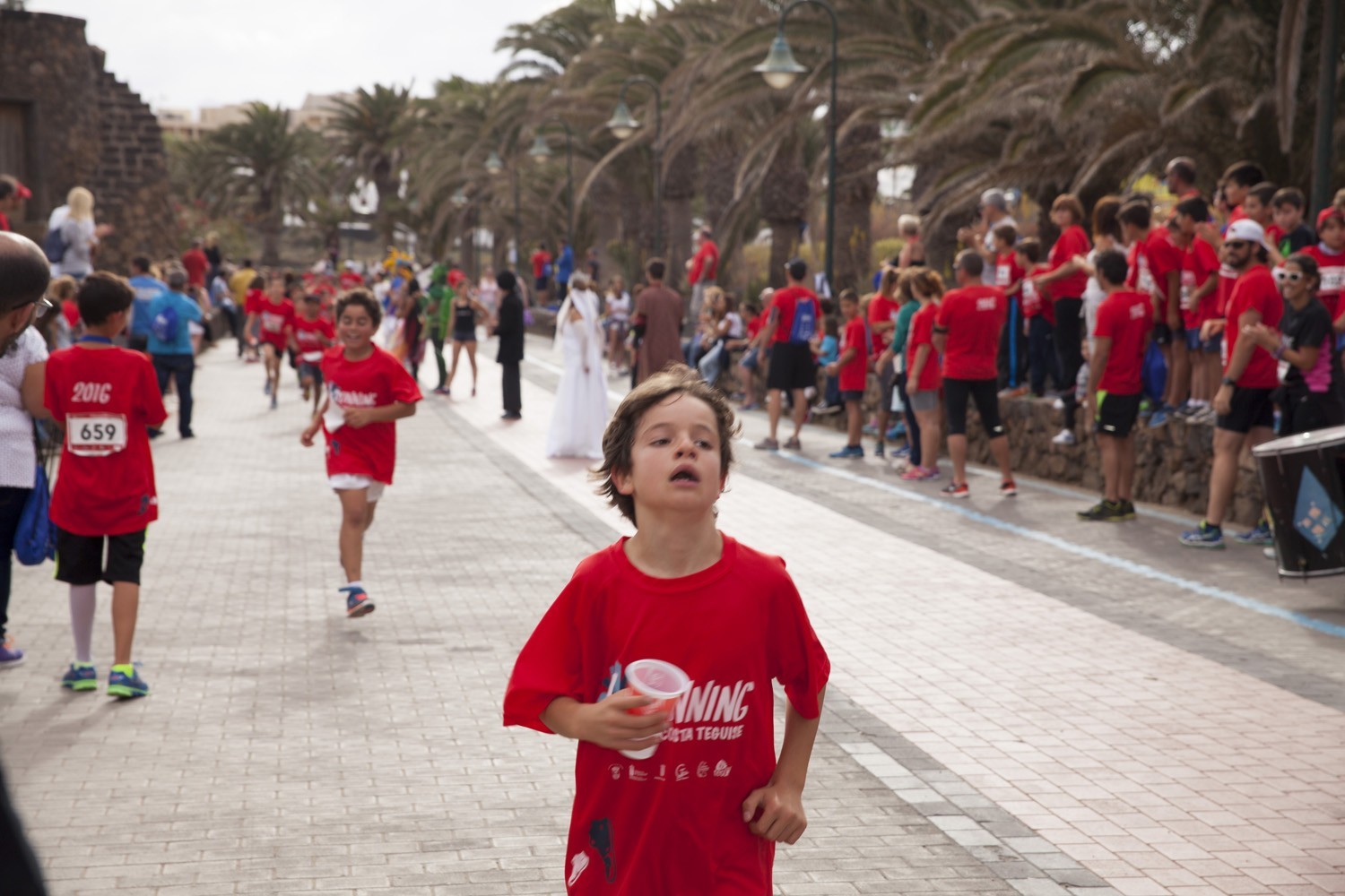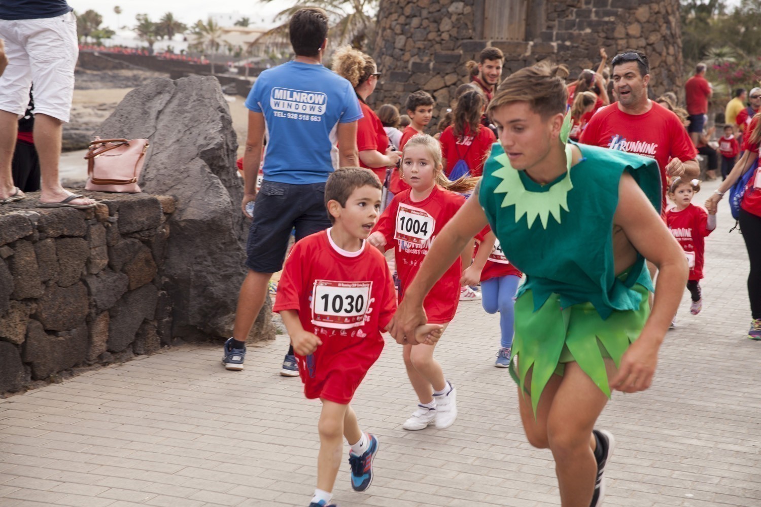 La Avenida Marítima de Playa Bastián se llenó de niños, padres y profesores en la cuarta edición de la Running CEIP Costa Teguise celebrada este viernes, formando una gran marea roja de corredores en una prueba familiar que batió nuevo récord de participación con 1.200 inscritos, más otras tantas personas que acudieron a disfrutar de una actividad que se han convertido en cita ineludible para toda la comunidad educativa de Costa Teguise.