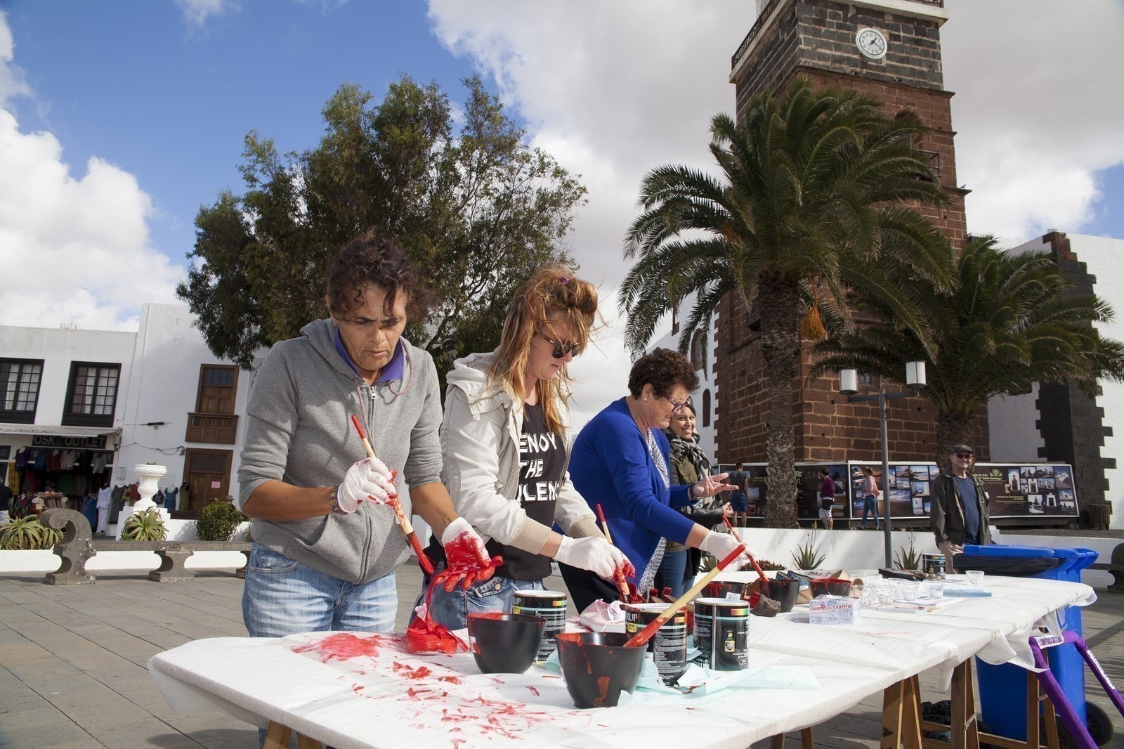 La Plaza de los Leones de Teguise se llena de zapatos rojos en contra de la violencia de género
