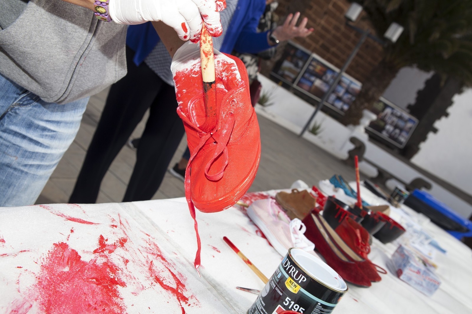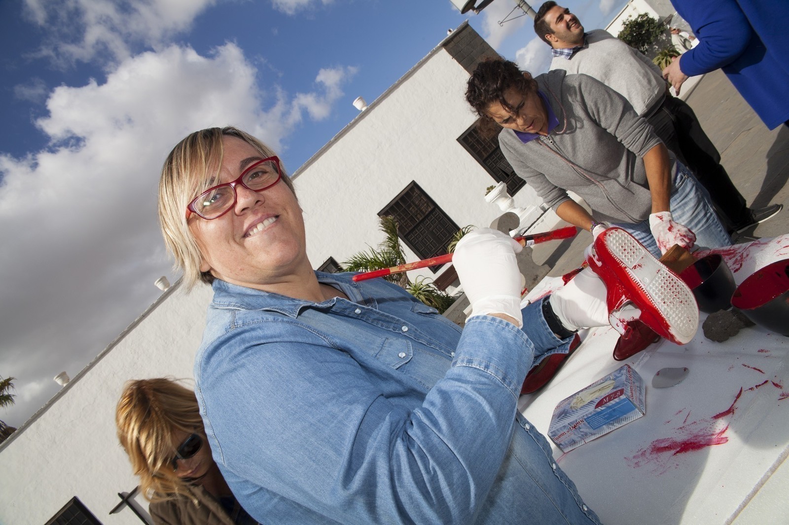 El alcalde de Teguise, Oswaldo Betancort, y la concejala de Igualdad, Nori Machín, en coordinación con el Foro Contra la Violencia de Género, conmemoró esta mañana el Día Internacional de la Eliminación de la Violencia Hacia la Mujer con el proyecto Zapatos Rojos, una instalación al aire libre en la que todos podían aportar unos zapatos rojo o pintarlos en señal de rechazo a la violencia de género, obra de la artista visual Elina Chauvet, dedicada a las mujeres que han sufrido violencia de género.