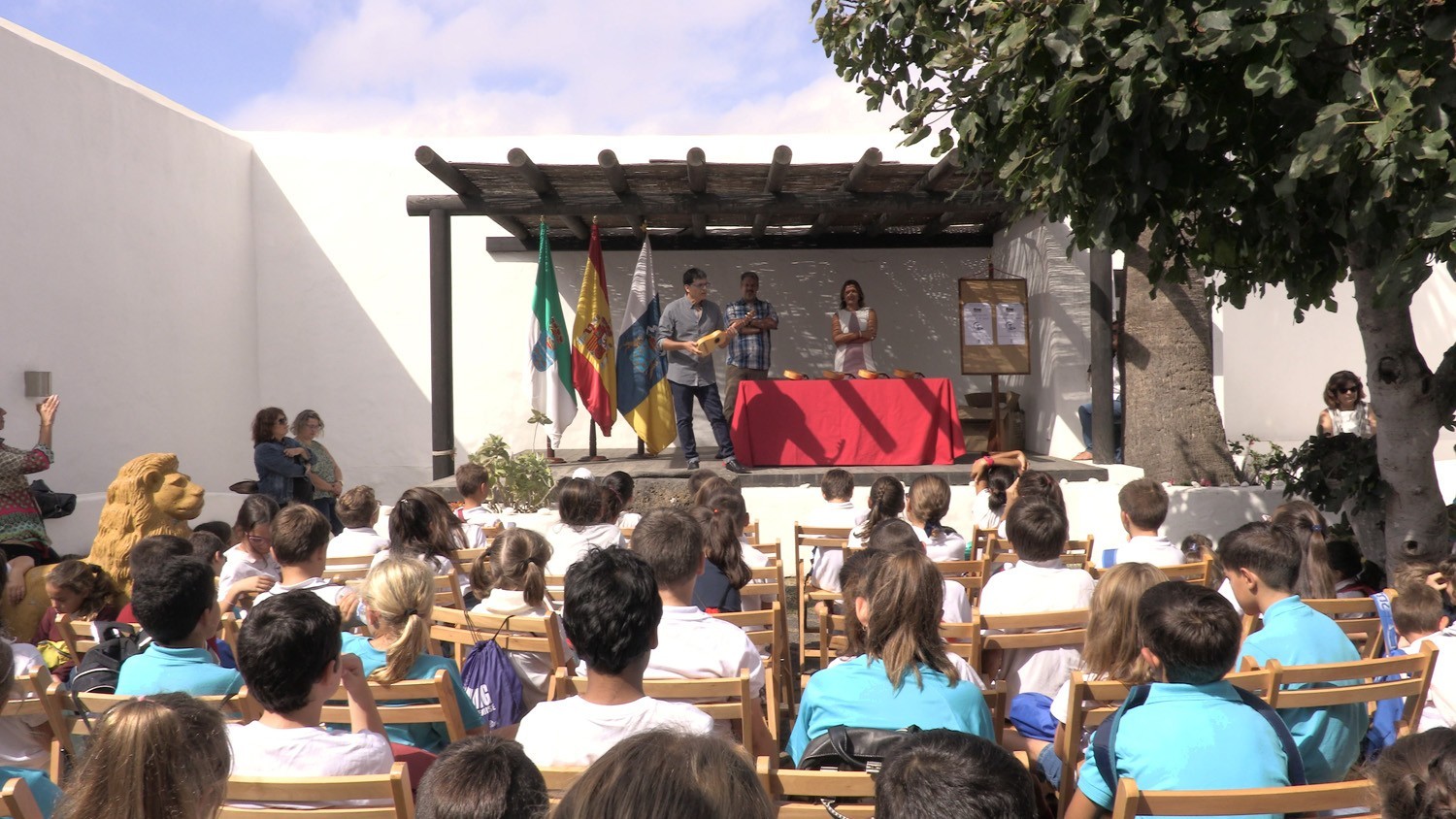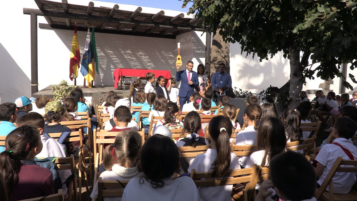 Para ello, el Ayuntamiento de Teguise ha cedido los 15 primeros instrumentos de timple a los alumnos del CEIP Costa Teguise en un acto simbólico durante la visita de los escolares a la Casa-Museo del Timple en la Villa de Teguise.