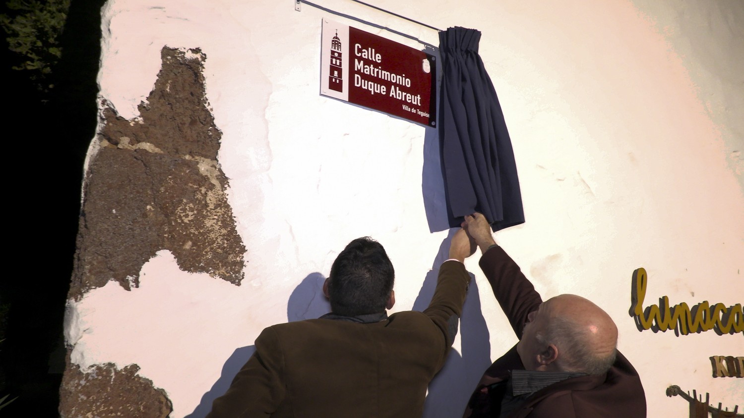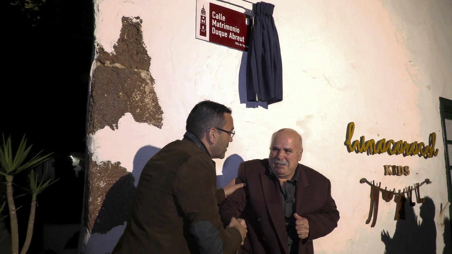 Una de las calles del casco histórico de La Villa de Teguise luce desde la noche de este jueves el nombre del matrimonio que fundó el mítico Restaurante Acatife en el pleno centro de La Villa. En un emocionante y familiar encuentro, el alcalde de Teguise, Oswaldo Betancort, descubrió la nueva placa en la calle situada en el lateral derecho del edificio, antigua mansión de Antonio Cabrera de Ayala, y posterior residencia de Domingo Cancio Pérez.